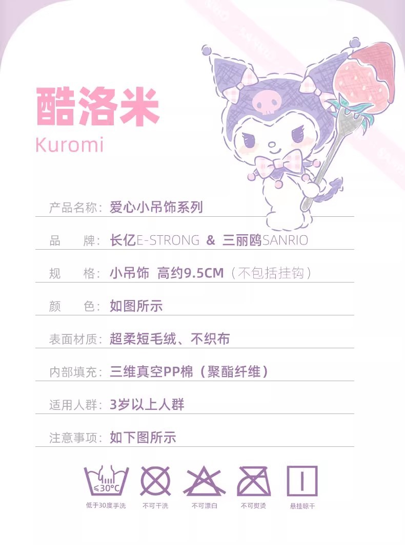 | Color | Colgante de amor de Kitty [10 cm], Colgante de amor de Kulomi [9.5 cm], Colgante de amor de Melody [10 cm], Colgante de amor de perro de orejas grandes [9 cm], Colgante de amor de perro pudín [10 cm], Colgante de amor de perro Pachia [10 cm], 50 aniversario limitado Hello Kitty [13 cm] |