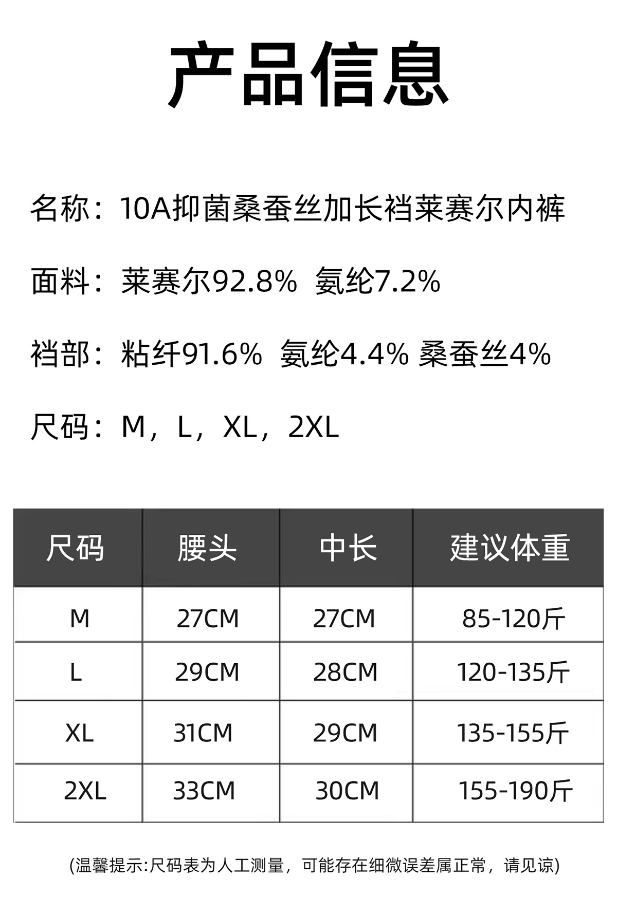 | Composición del material en la entrepierna | Seda de Morera |