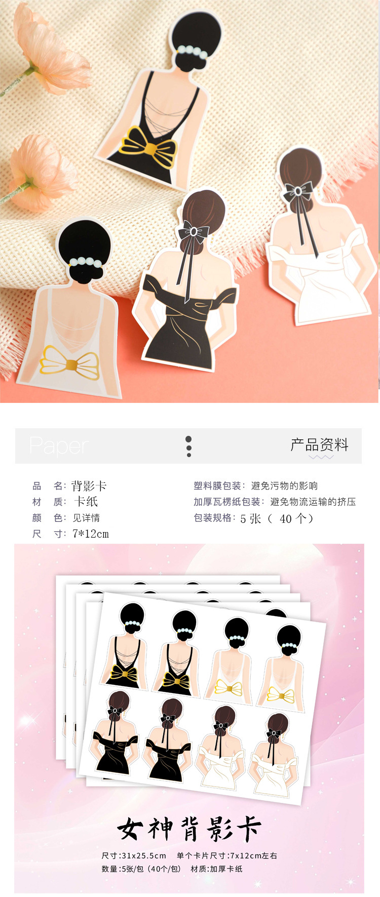 5 tarjetas de espalda de la diosa (40 piezas)/paquete,Arco de perlas 2 tiras/paquete,2cm cinta de tela 10 m,Palo de bambú con pegamento 50cm20 pc/bolsa,Hilo ondulado blanco 28cm * 5 yardas