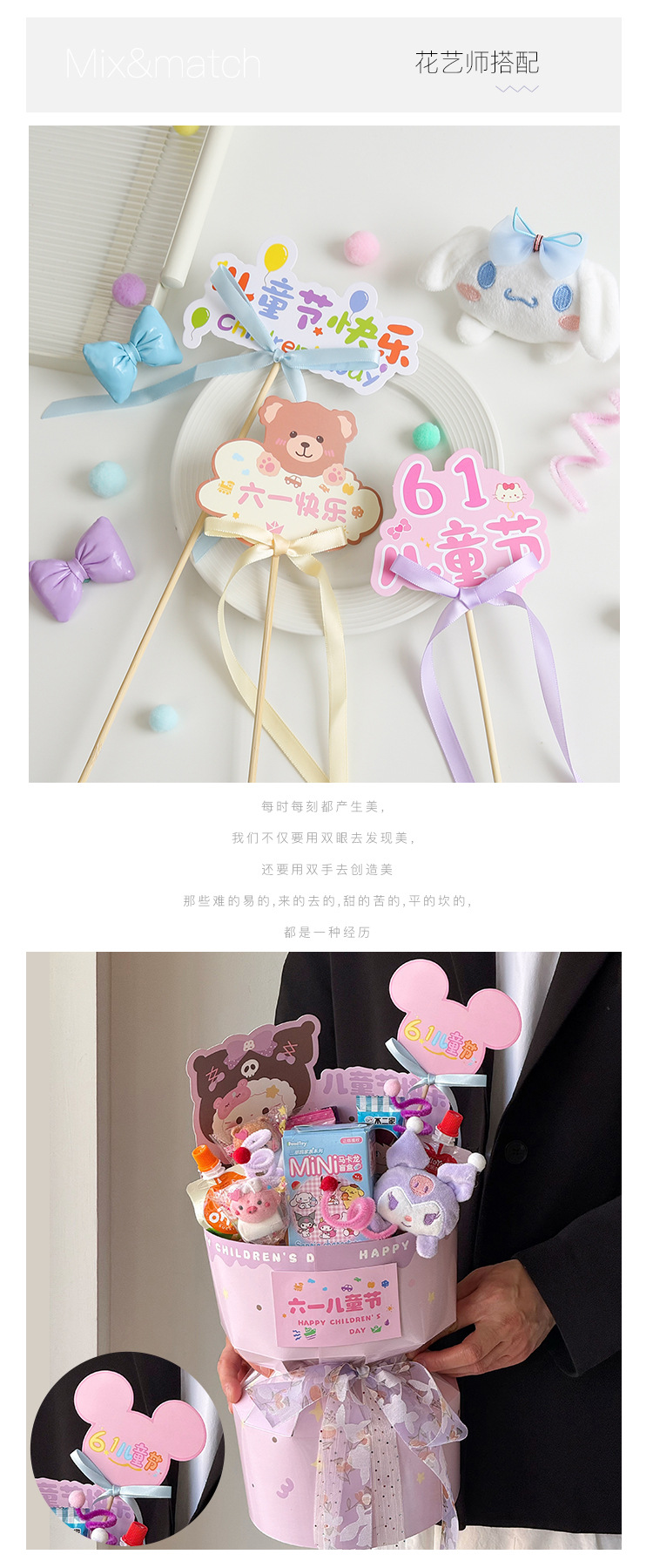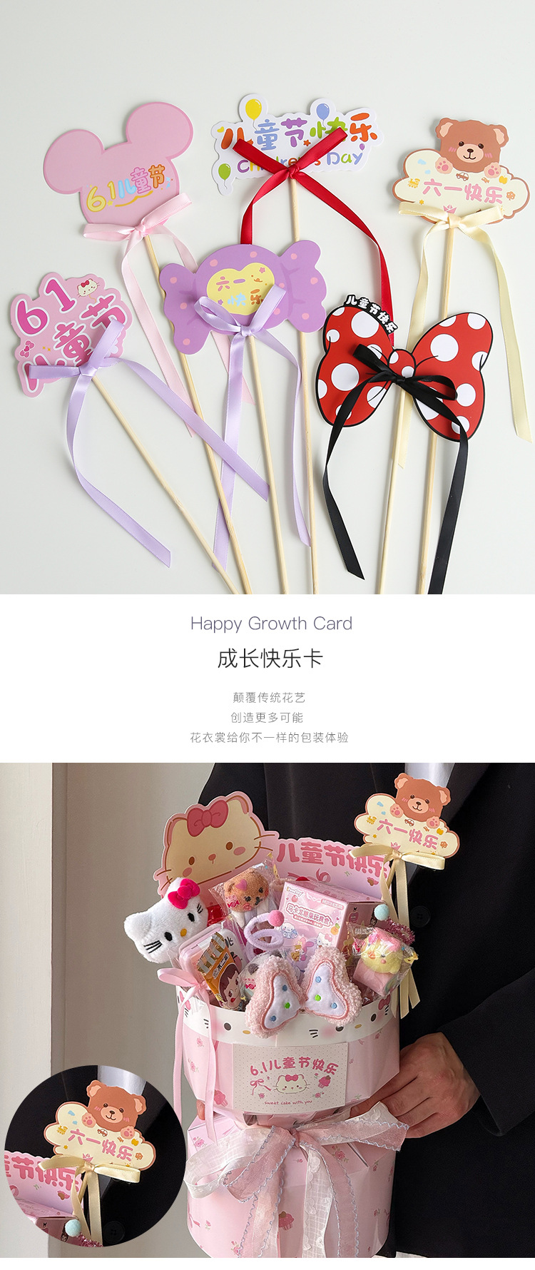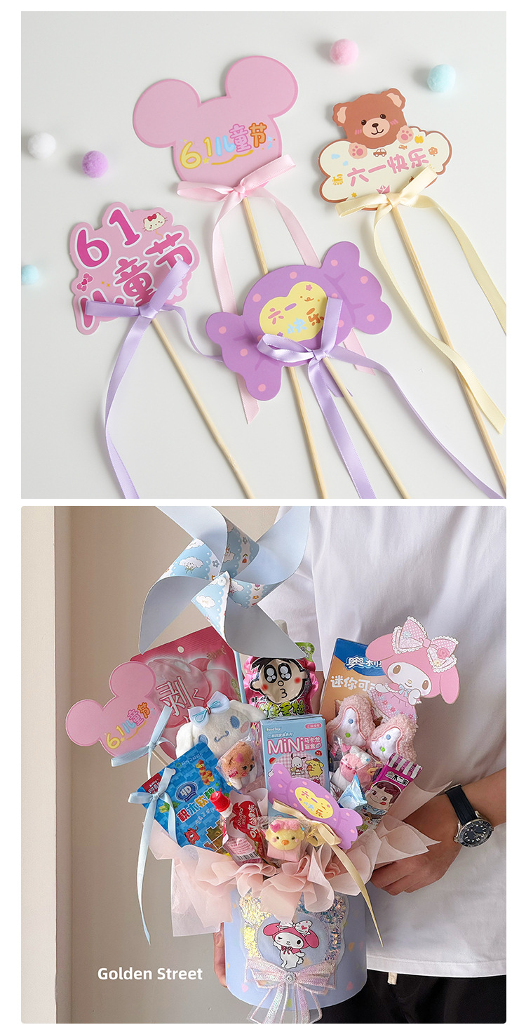 Día del niño Tarjeta de dibujos animados Tarjeta de felicitación colgante Hecho a mano Diy caramelo Aperitivos Ramo Material de embalaje Regalo