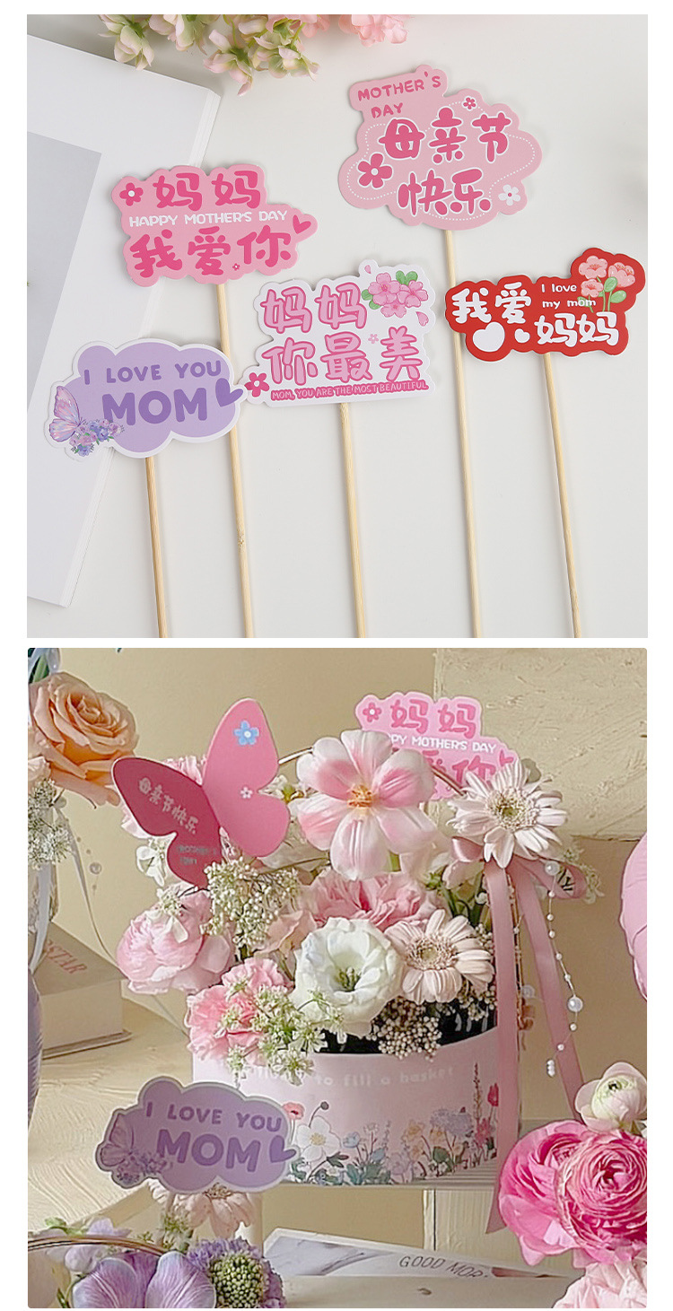 Día de la Madre Tarjeta de felicitación de ramo pequeño Etiqueta colgante Tarjeta de bendición de vacaciones Regalo Caja de flores Tarjeta de inserción decorativa Material de bricolaje
