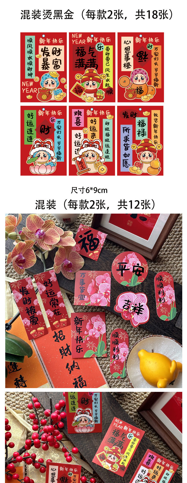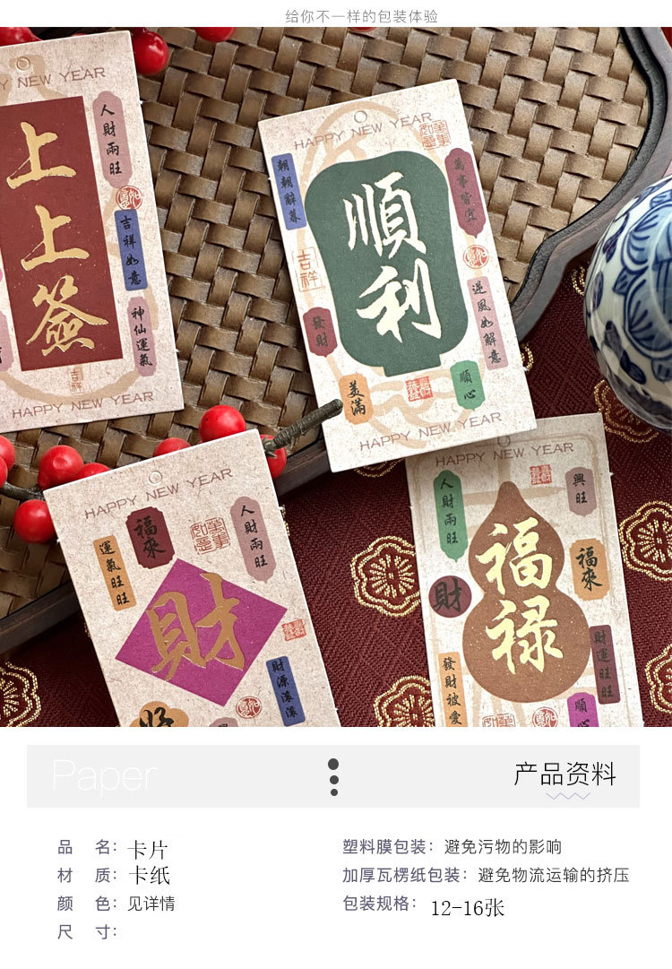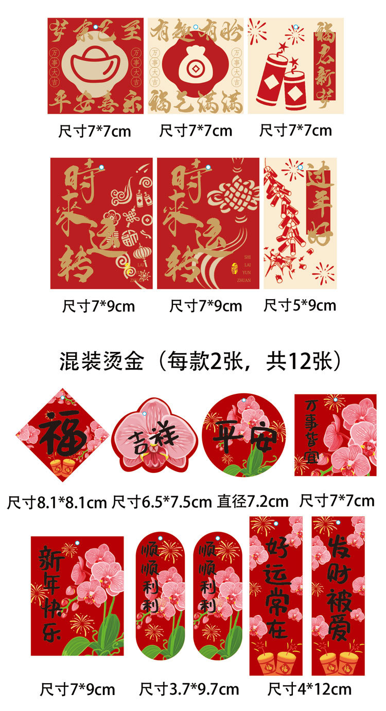 | Tamaño | Cuerdas rojas (100 piezas / paquete), 12 tarjetas 2, 16 tarjetas 6, 12 tarjetas 8, 12 tarjetas 9, 12 tarjetas 10, 14 tarjetas 13, 12 tarjetas 14, 12 tarjetas 18, 16 tarjetas de caligrafía 12, 12 tarjetas de estampado de oro, tarjetas de estampado de oro (76 pequeñas), 12 tarjetas de koi, 19 tarjetas de Año Nuevo 1, 22 tarjetas de Año Nuevo 2, 24 tarjetas de Año Nuevo 3, 8 tarjetas rojas del dios de la fortuna, 40 tarjetas de Año Nuevo, 16 tarjetas colgantes rojas con cuerda colgante + espigas colgantes, 16 tarjetas colgantes rosadas con cuerda colgante + espigas colgantes, 16 tarjetas colgantes púrpura con cuerda colgante + espigas colgantes, 48 tarjetas felices de seguridad, 90 tarjetas colgantes de león despierto para enviar cuerda colgante, 12 tarjetas rosa estampadas, 12 tarjetas moradas estampadas, 12 tarjetas rojas estampadas, 76 tarjetas colgantes de seguridad, 2 tarjetas colgantes koi rosa / paquete, 2 tarjetas colgantes koi púrpura / paquete, 2 / paquete, 5 / paquete, Fu Bao en polvo claro, Fu Bao en rojo, Fu Bao en naranja, 5 bolas de panal de 5 cm en polvo claro / paquete, 5 bolas de panal de 5 cm en polvo claro / paquete, 5 bolas de panal de 5 cm en polvo rojo / paquete, 5 bolas de panal de 5 cm en polvo amarillo / paquete, colgentes de madera mezcla roja 12 / paquete, Fu Zi 2 / paquete, Fu Zi 2 / paquete, Fu Zi 2 / paquete, Fu Zi 2 / paquete, Fu Zi 5 / paquete, Fu Zi 5 / paquete, 6 platos de nudo chino 10 rojos, Fu Zi 5 rojos, Wu Zi 5 rojos, una calabaza roja, Una calabaza rosa, una calabaza púrpura, una calabaza azul, una calabaza naranja, una calabaza roja |