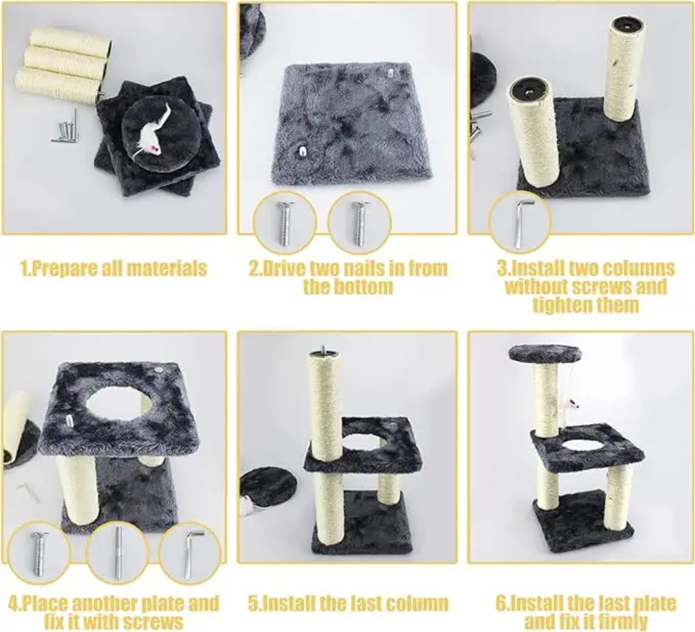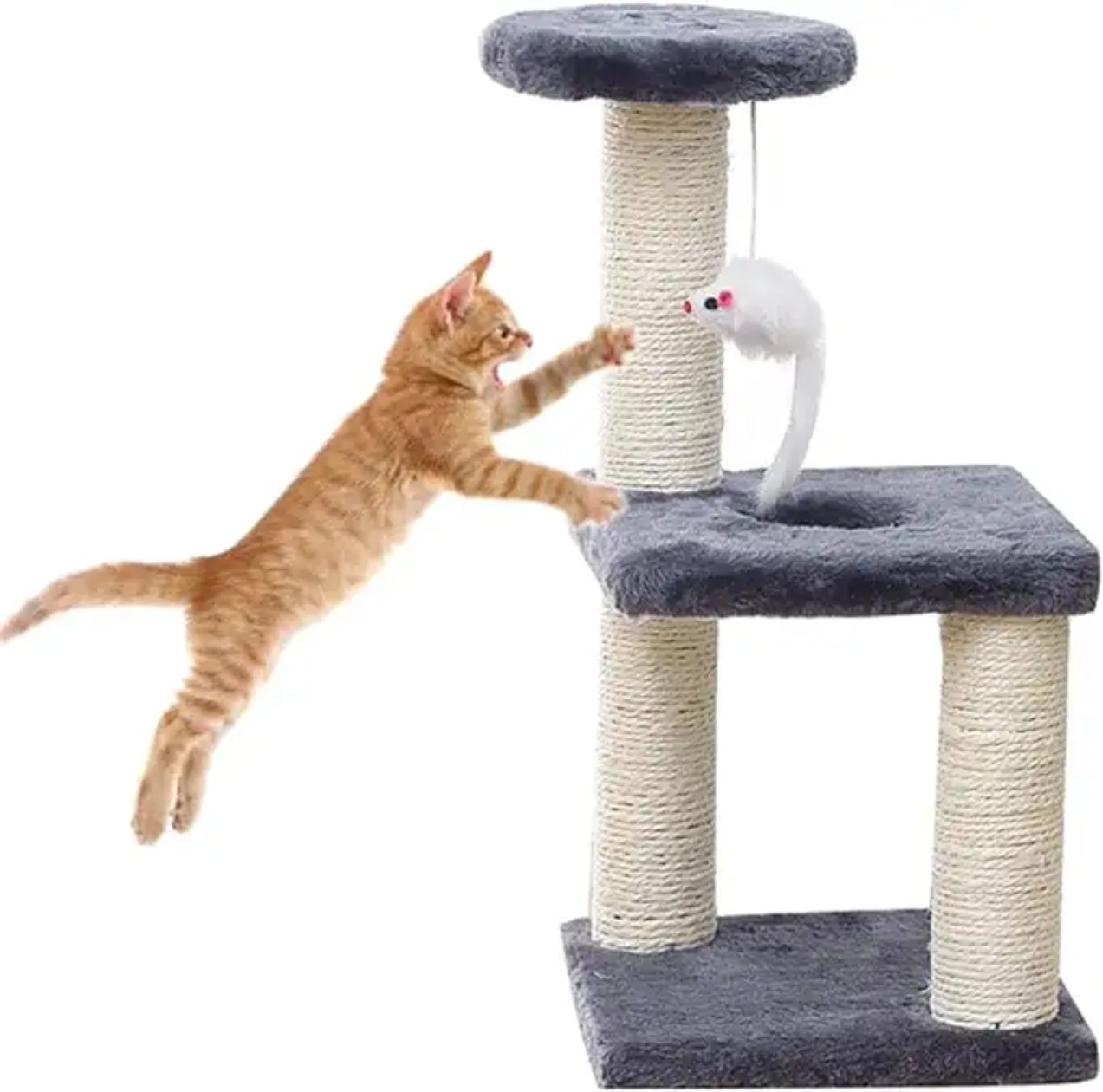 Transfronterizo pequeño gato escalada marco de seda vertical tres columnas de tres capas columna de garra de gato de tamaño medio simple gato salto plataforma gato agarre juguete