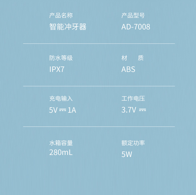 产品名称:智能冲牙器(型号AD-7008)