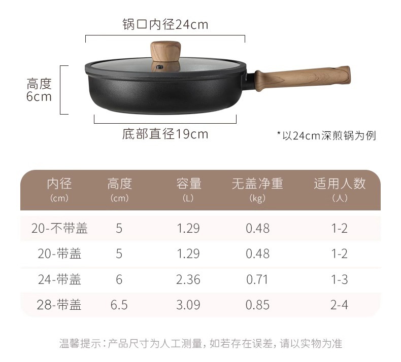 | Colores | 20cm sartén profunda sin tapa,Sartén honda de 24 cm sin tapa.,Sartén de 28 cm sin tapa.,Sartén de 20 cm con tapa.,Sartén de 24 cm con tapa.,Sartén de 28 cm con tapa. |