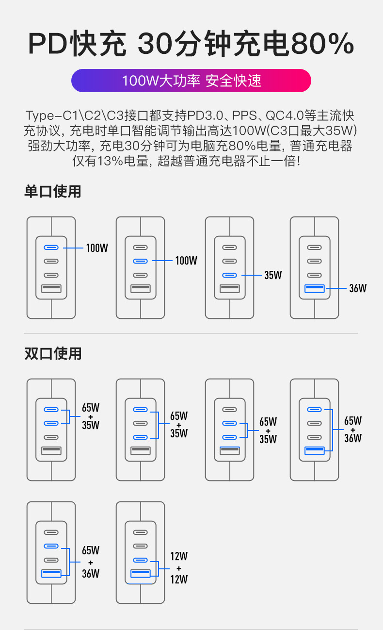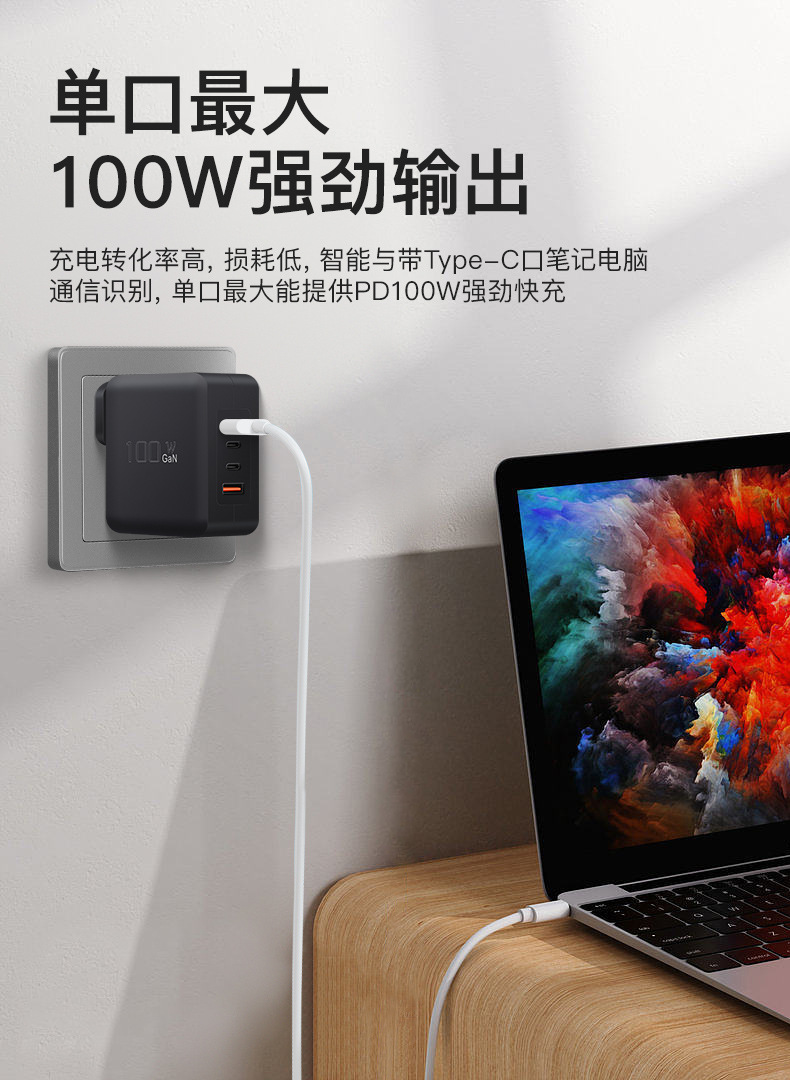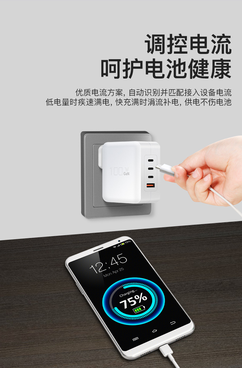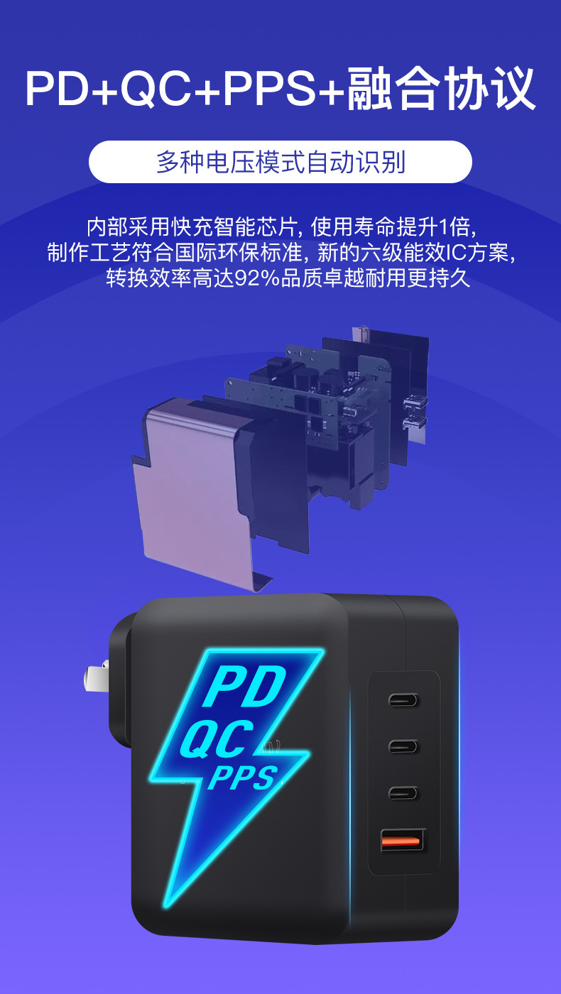 GaN PD100W GaN3C1A cabezal de carga multipuerto PPS multiprotocolo cargador inteligente de distribución automática