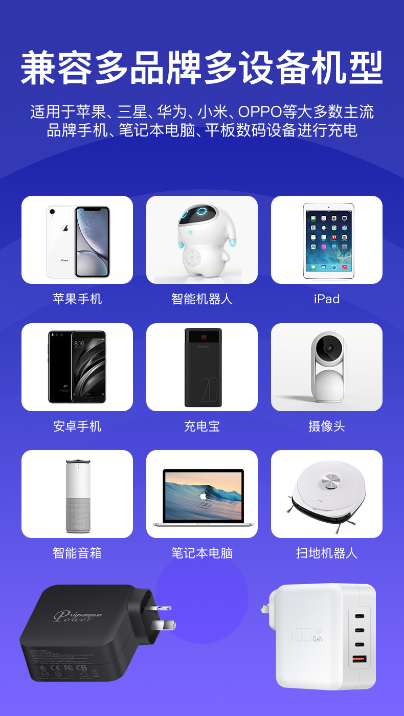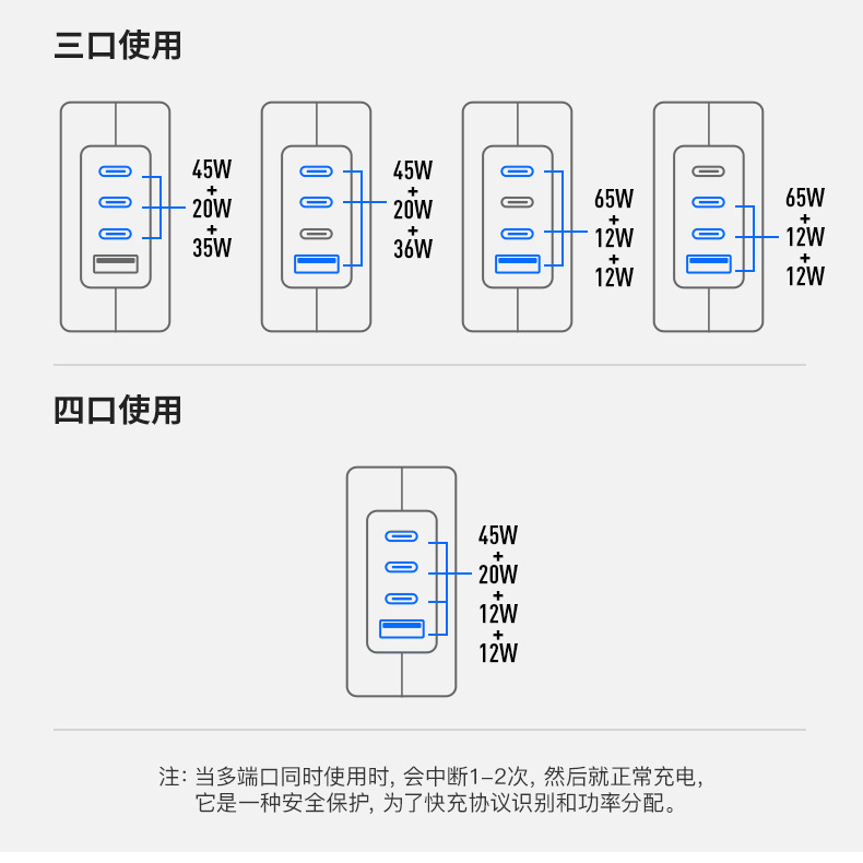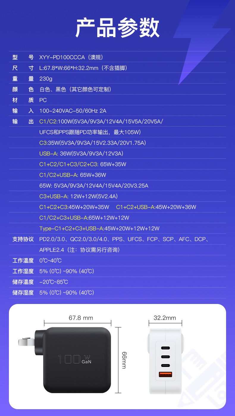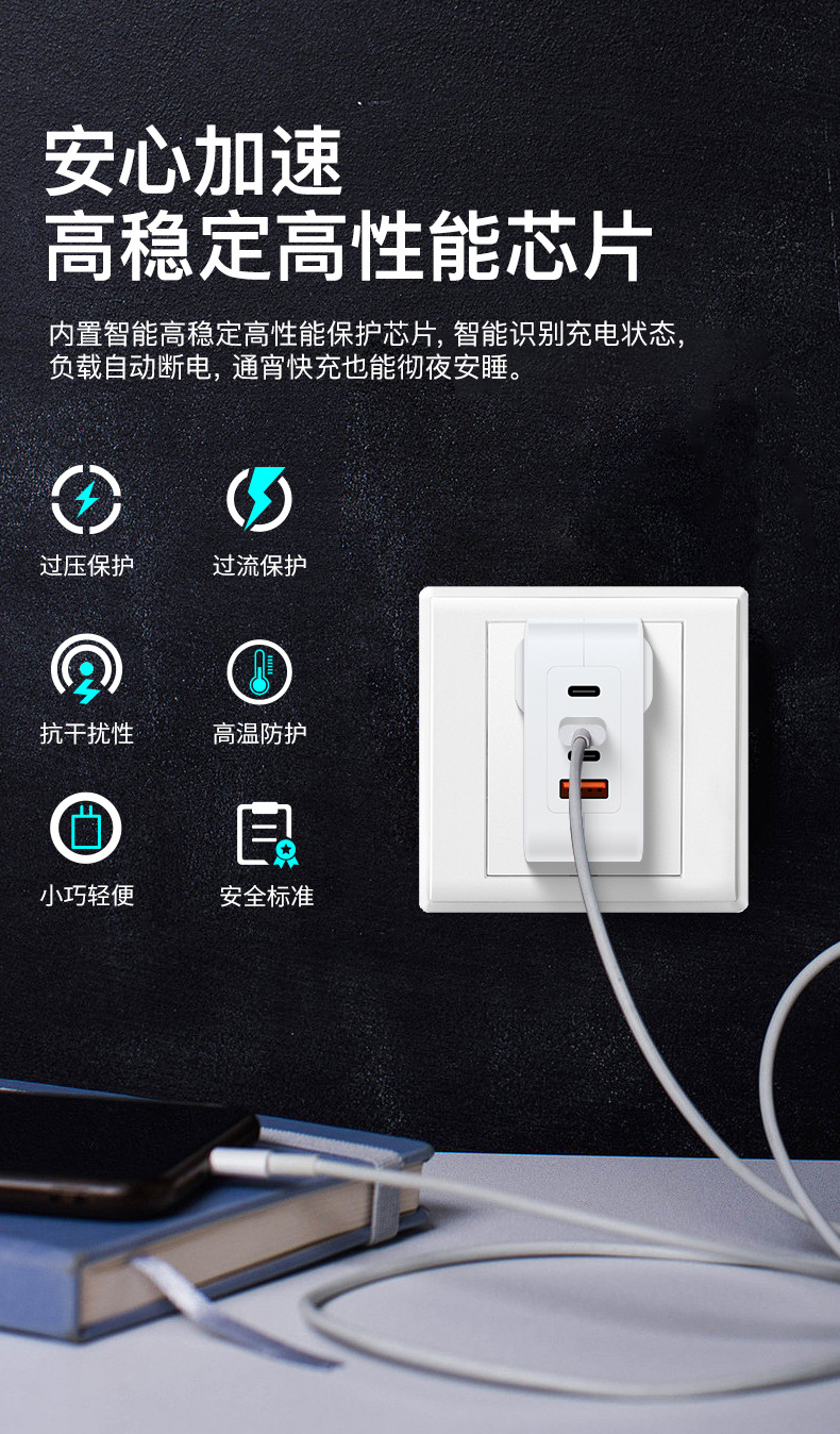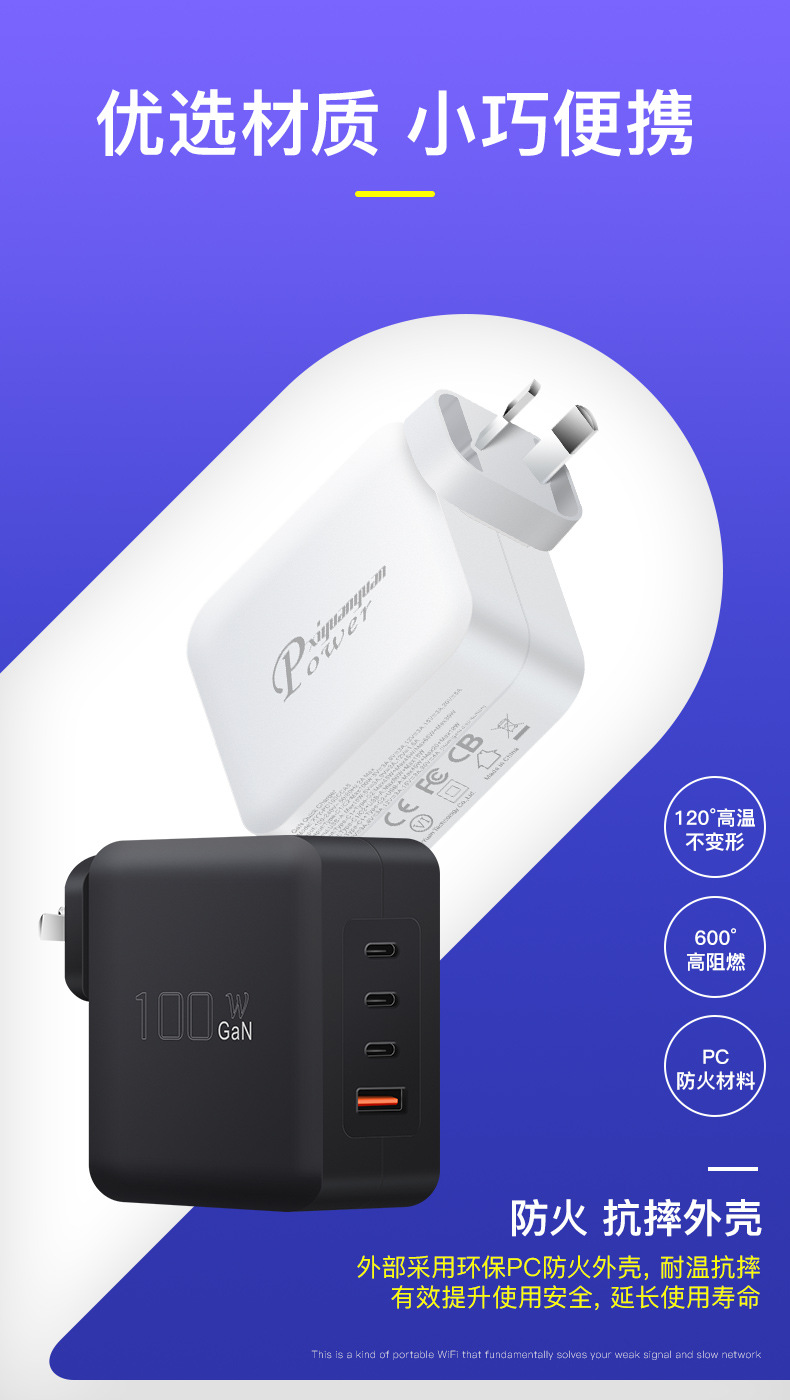 GaN PD100W GaN3C1A cabezal de carga multipuerto PPS multiprotocolo cargador inteligente de distribución automática