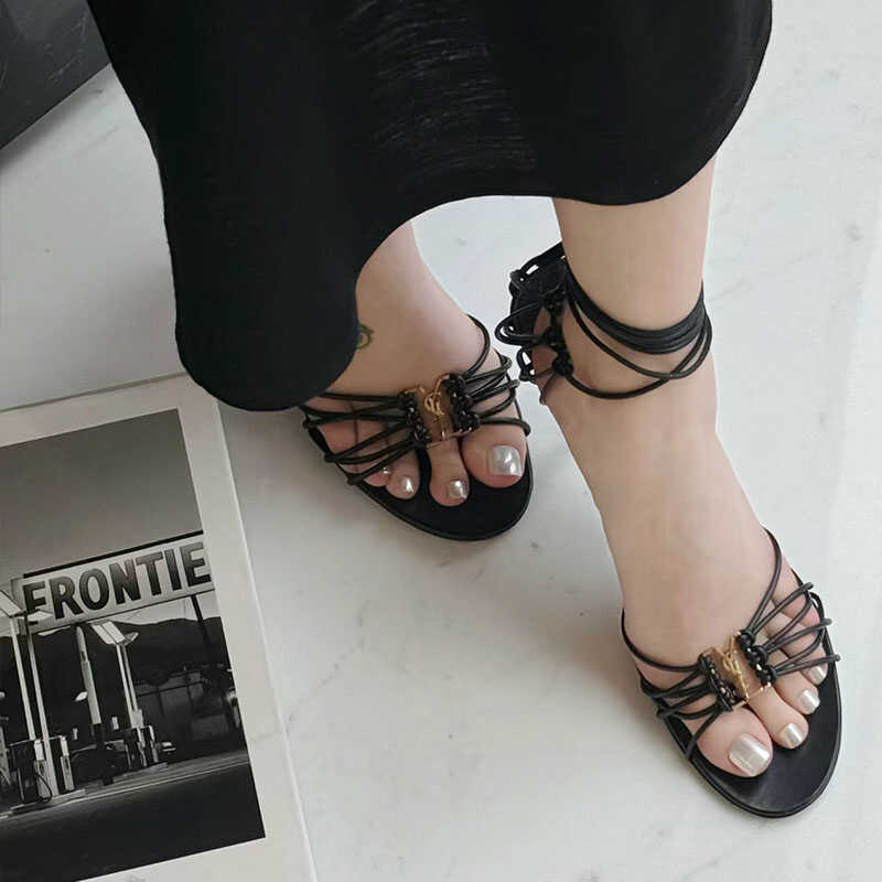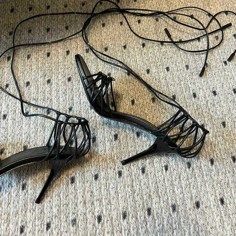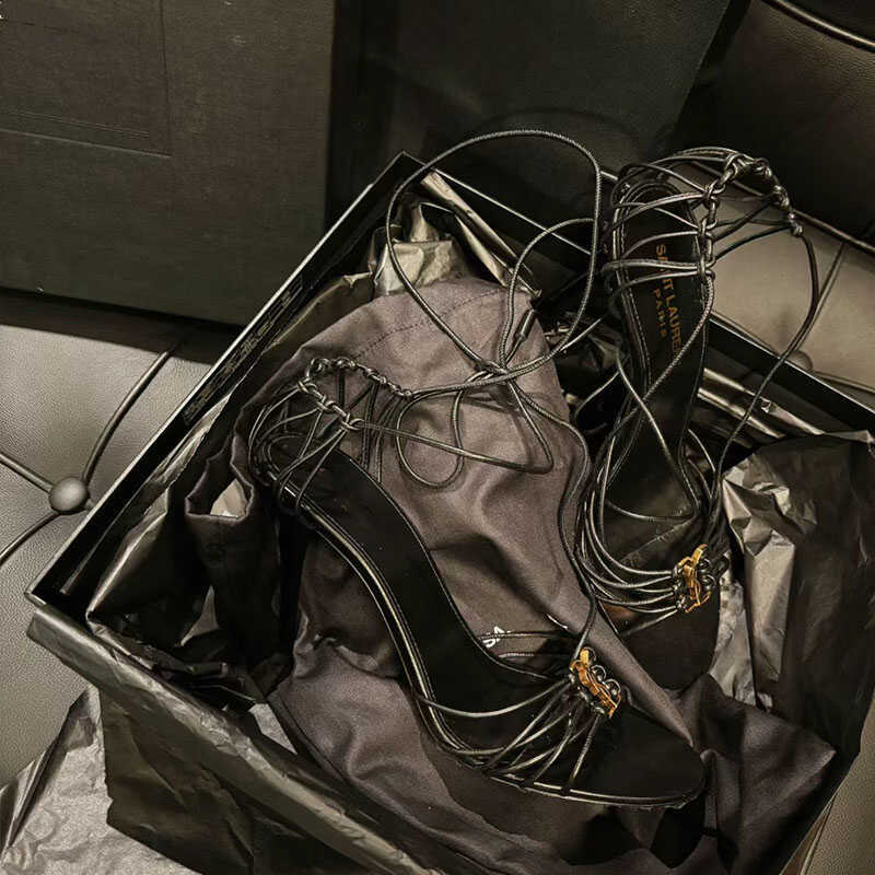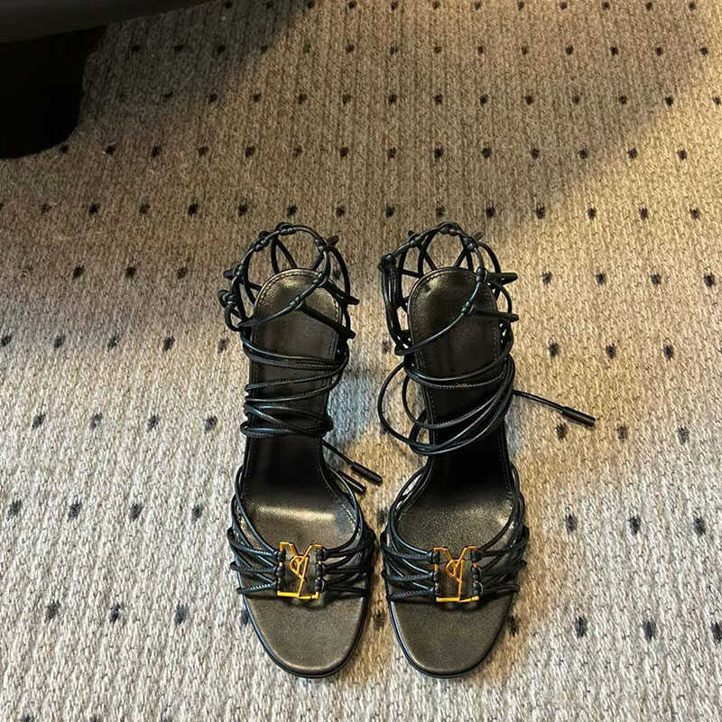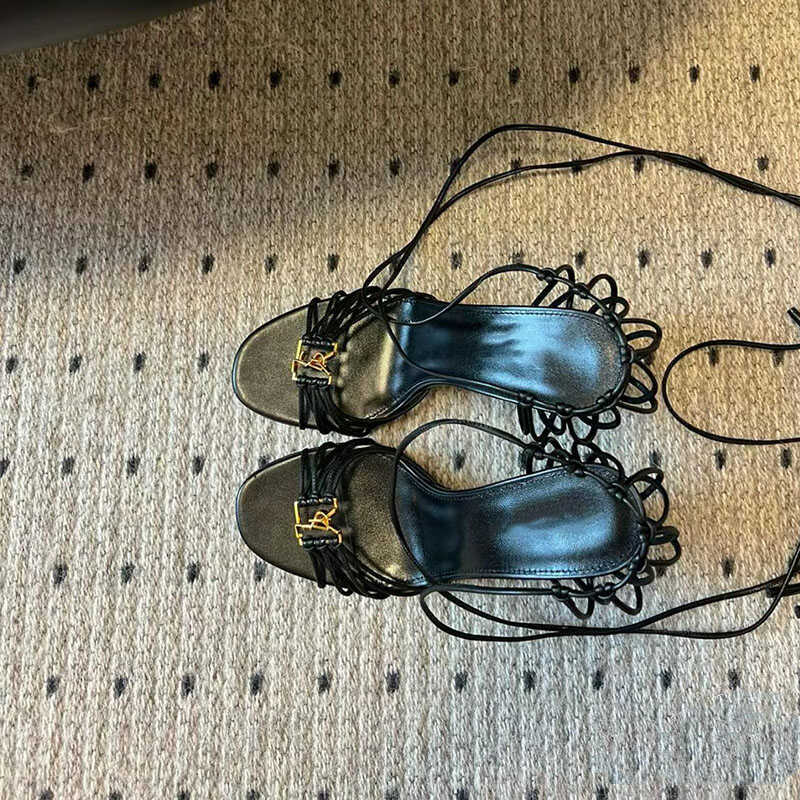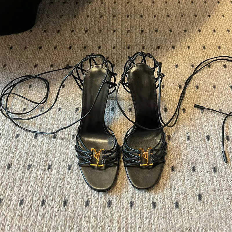 2025 Cross-border YS sexy zapatos de tacón alto con cordones cruzados para mujer nuevas letras hebilla de metal con punta abierta sandalias romanas