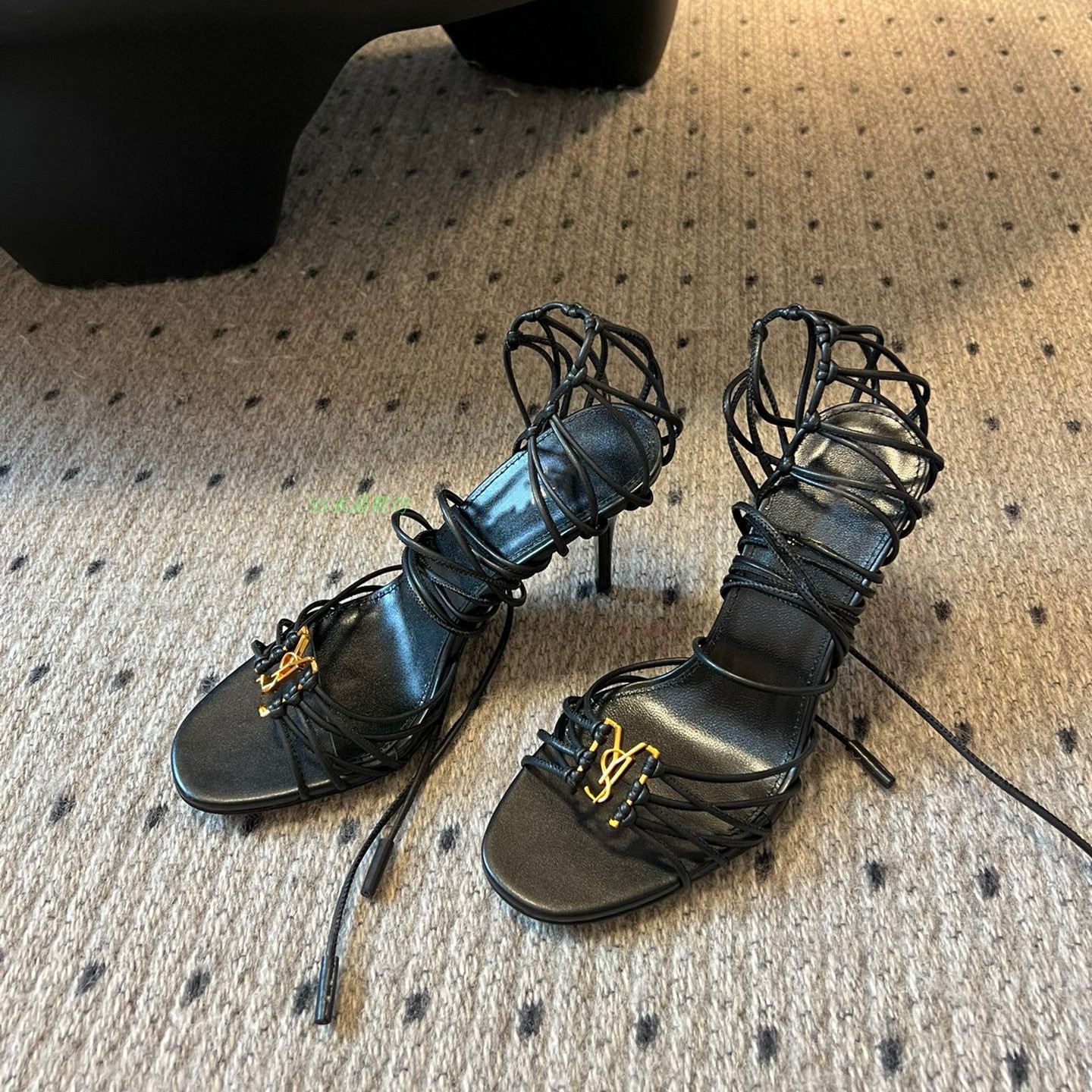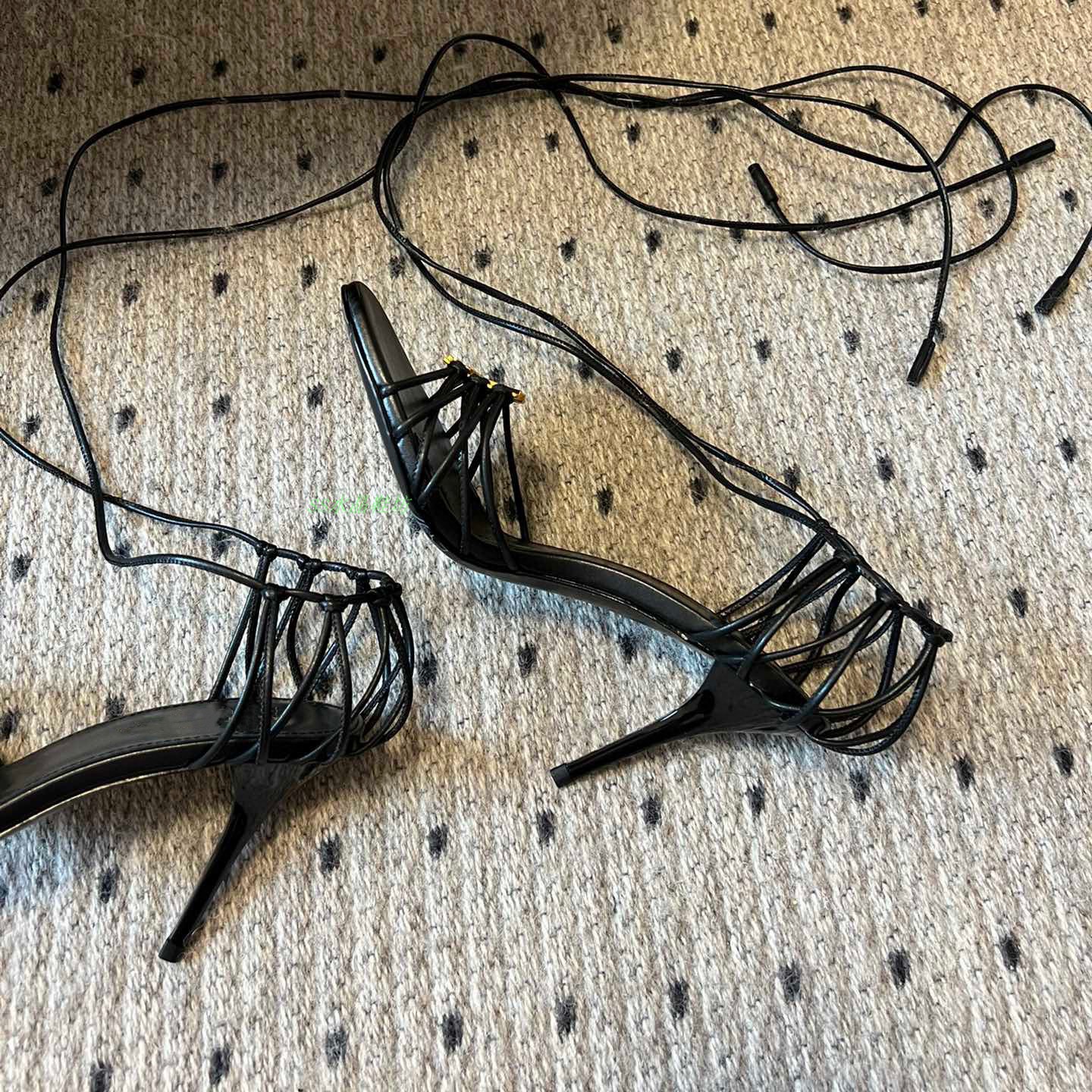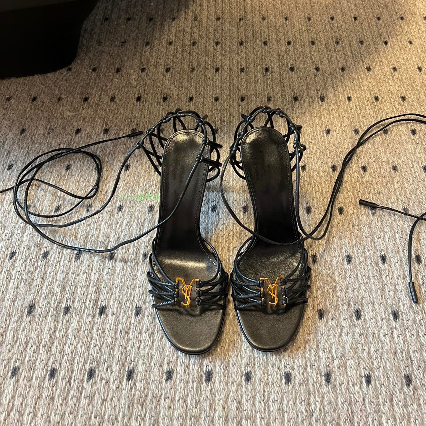 2025 Cross-border YS sexy zapatos de tacón alto con cordones cruzados para mujer nuevas letras hebilla de metal con punta abierta sandalias romanas