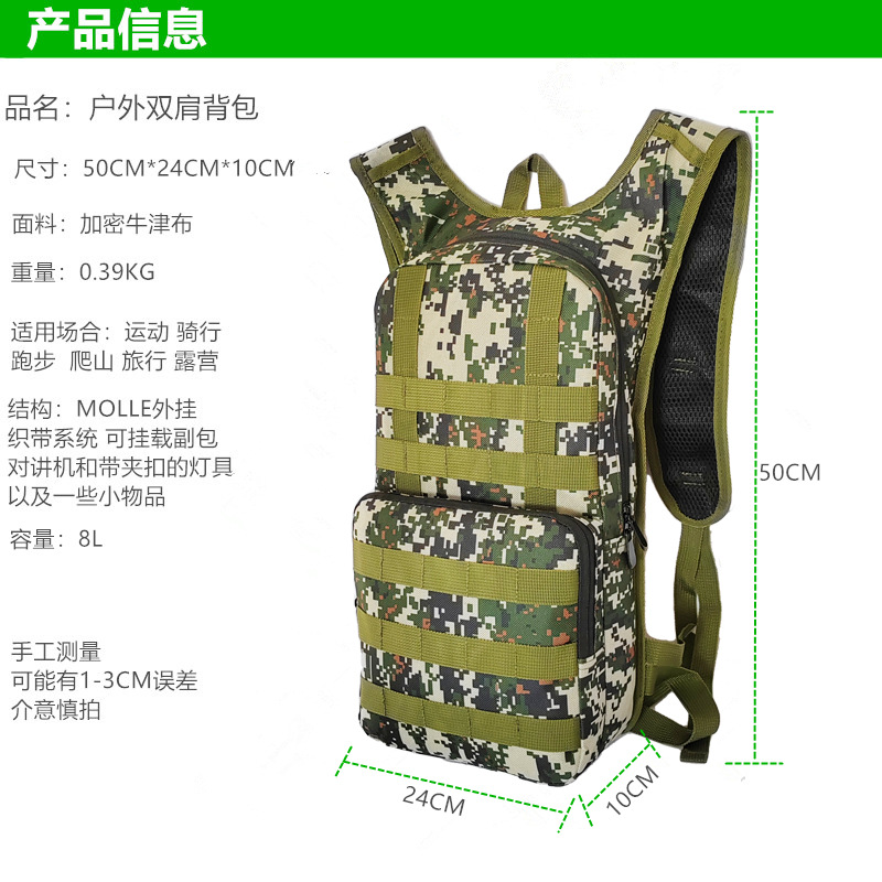 | Color | Negro, verde digital, marrón, negro + 2L bolsa de agua de cubierta de polvo, verde camuflado + 2L bolsa de agua de cubierta de polvo, marrón camuflado + 2L bolsa de agua de cubierta de polvo, negro + 3L bolsa de agua de cubierta de polvo, verde camuflado + 3L bolsa de agua de cubierta de polvo, marrón camuflado + 3L bolsa de agua de cubierta de polvo |