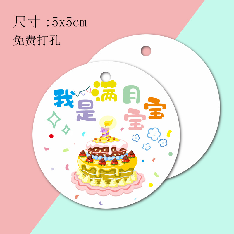 Tarjeta de luna llena para bebés, tarjeta colgante de regalo de cien días, tarjeta de agradecimiento de banquete de cien días, tarjeta de cumpleaños para niños