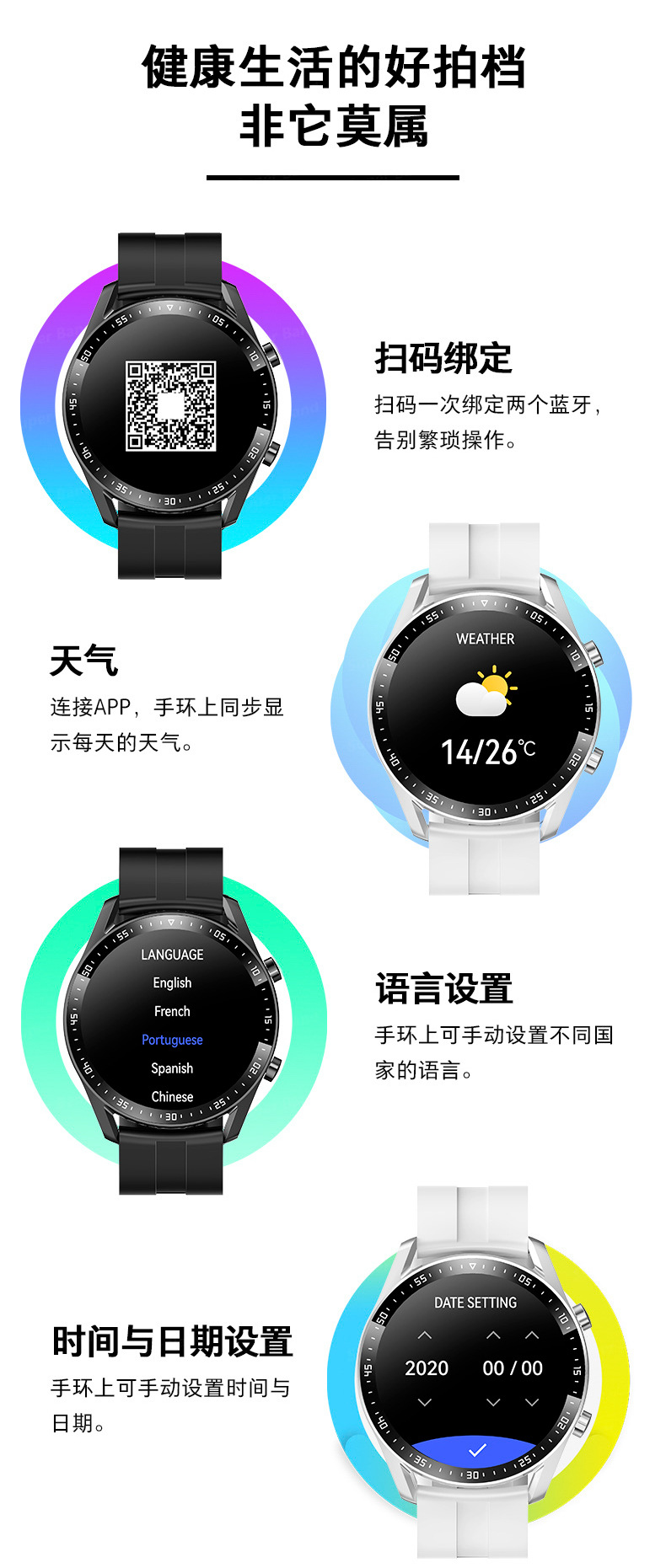 | Color | Silicone negro, vinilo plateado, cinturón negro, cuero marrón plateado, cinturón de acero negro, cinturón de acero plateado, cinturón de acero mecánico negro, cinturón de acero mecánico plateado |