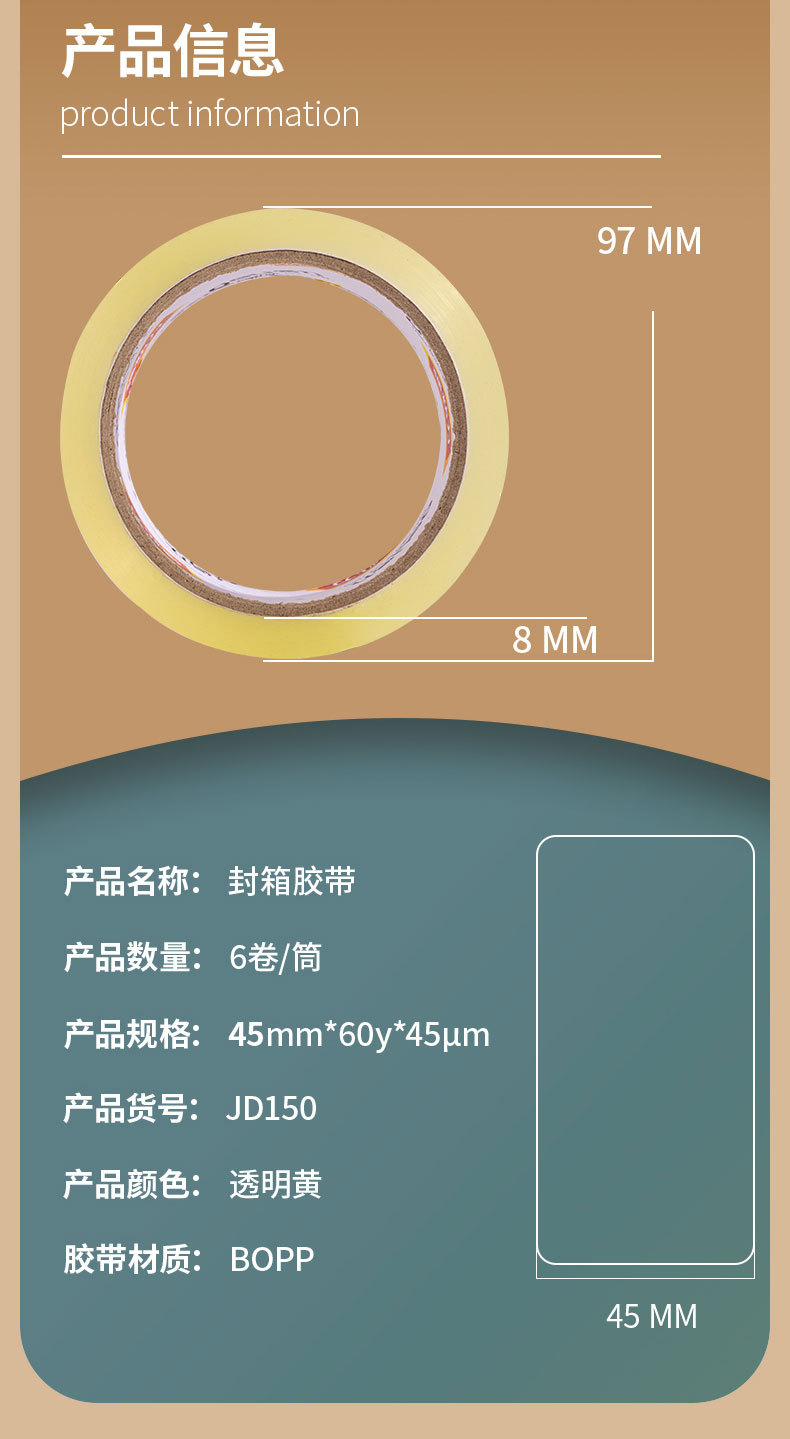 | Color | JD150 [cinta beige] 45mm * 60y, JD151 [cinta beige] 45mm * 100y, JD152 [cinta beige] 60mm * 60y, JD153 [cinta beige] 60mm * 100y, por favor tome 6 rollos de todo el cilindro |