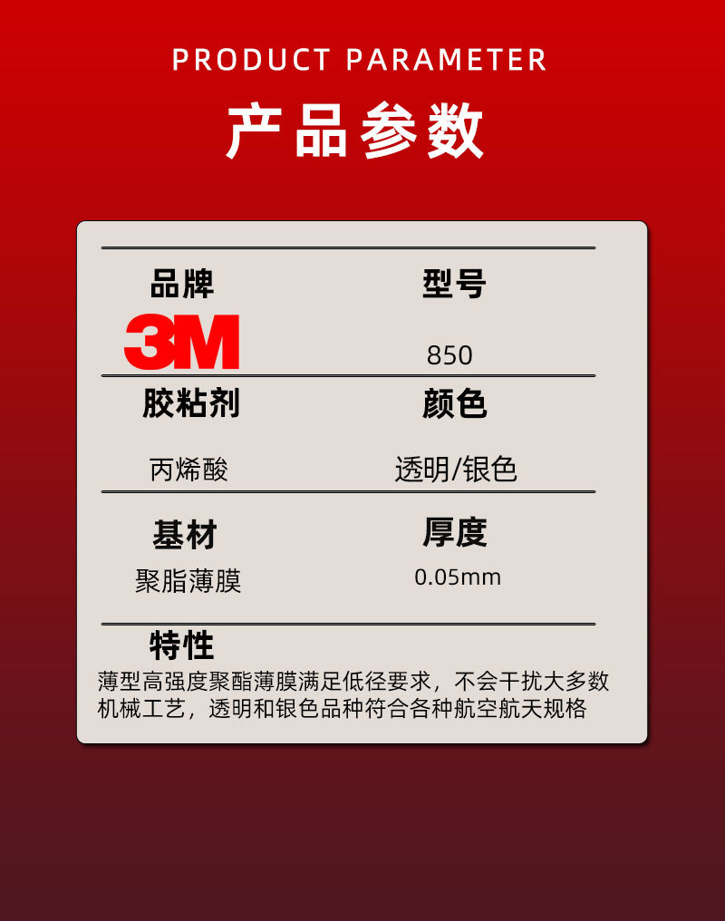 | Especificaciones y modelos | 3M850 (transparente); 609.6mm * 65.8m (estoc genuino) |