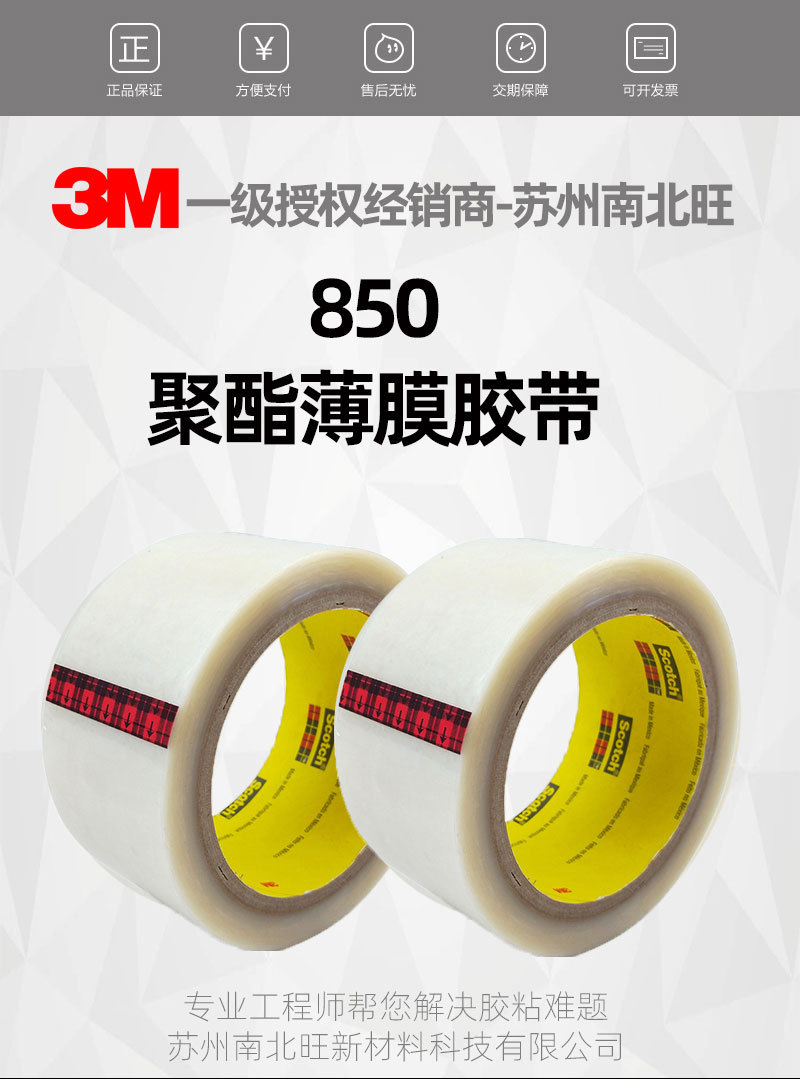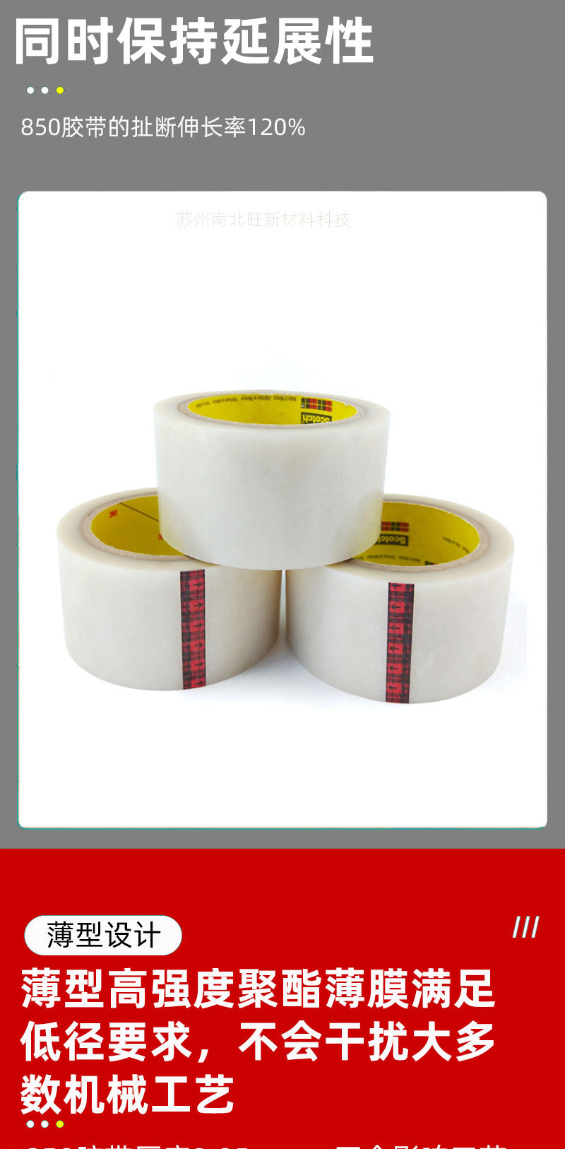 | Aplicación | La cinta adhesiva de película de poliéster 3MTM 850 es adecuada para aplicaciones de empalme que requieren una unión rápida y una unión permanente fuerte. para una amplia variedad de aplicaciones, incluyendo la adición de banda de papel |