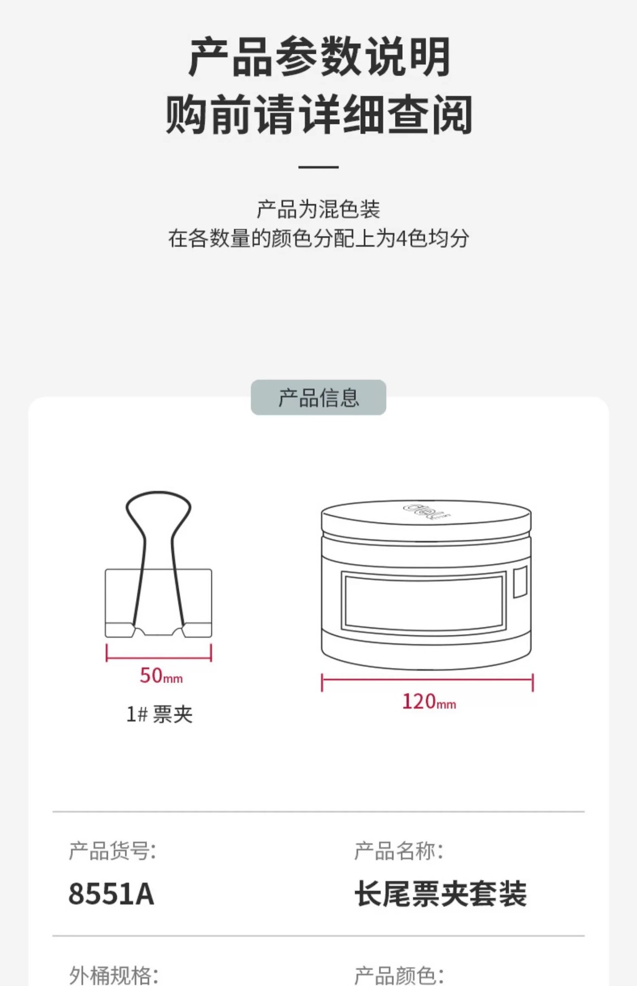 Molandi Long Tail Clip Multifunctional Office Simple Clip Clasificación mixta barril compacto Clip multipropósito