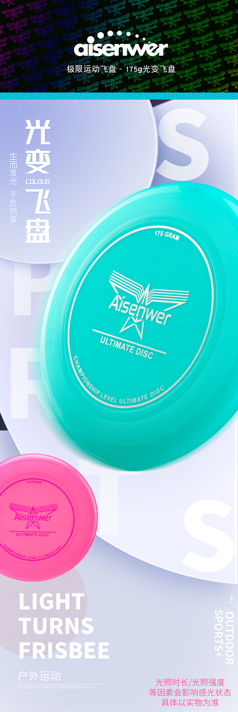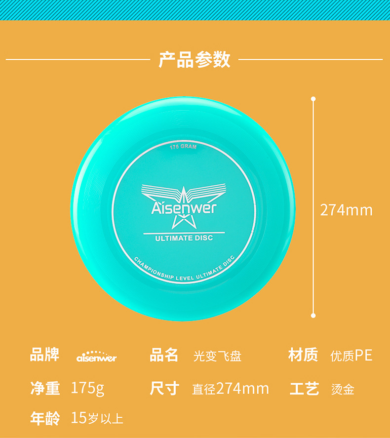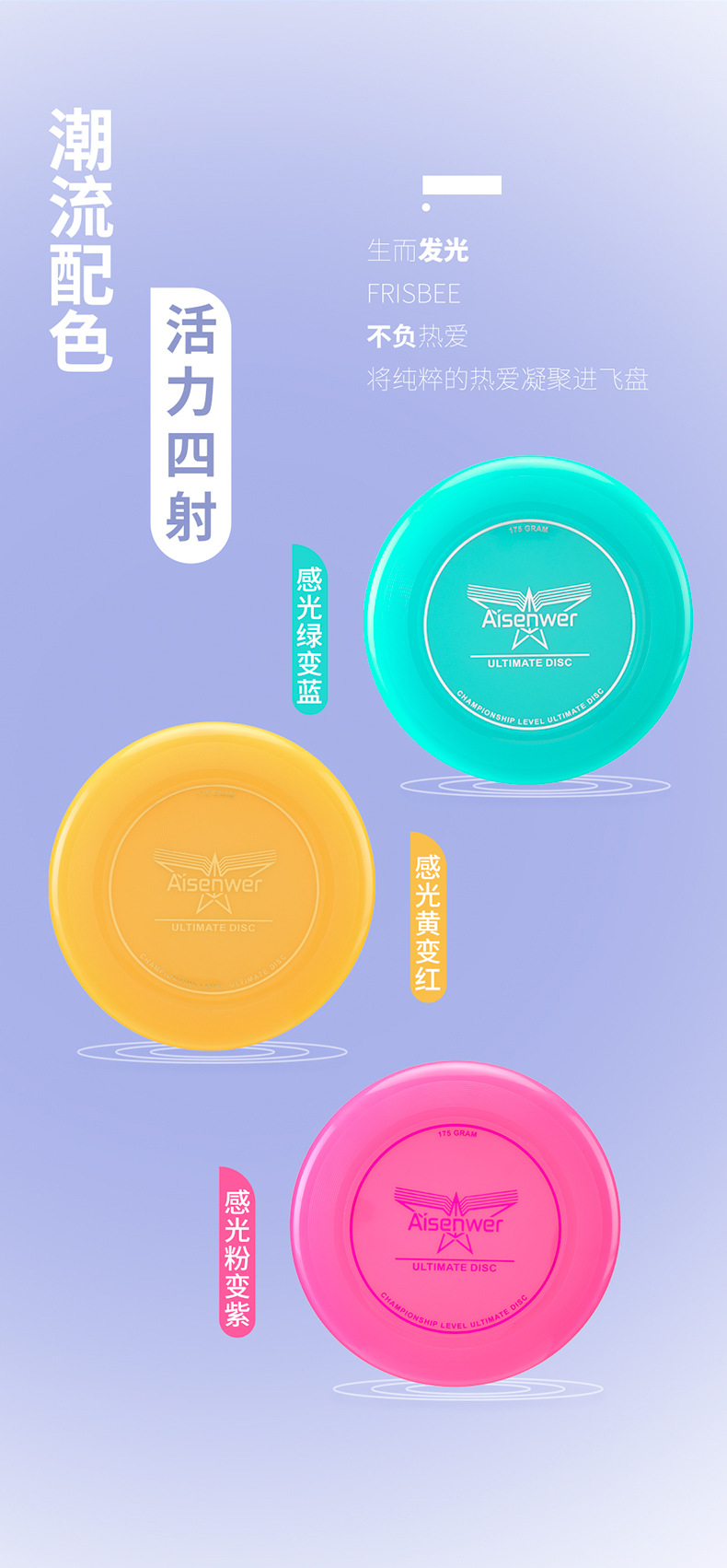 Aisenwer profesional extremo Frisbee nocturna Frisbee 175g equipo interactivo material PE al aire libre giroscópico plato volador