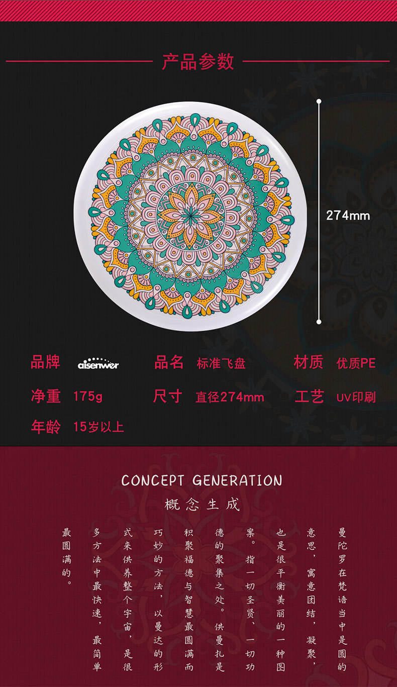 Aisenwer extremo Frisbee deporte mandala 175g profesional para adultos arena al aire libre competición de construcción de grupo plato volador