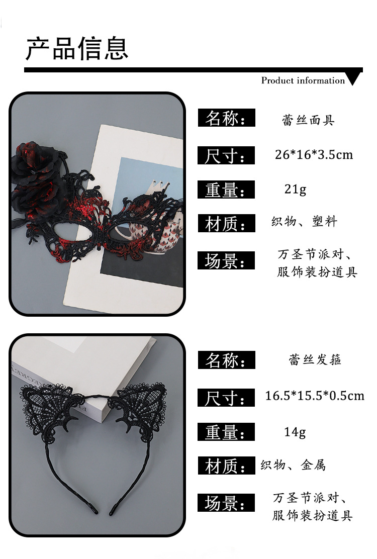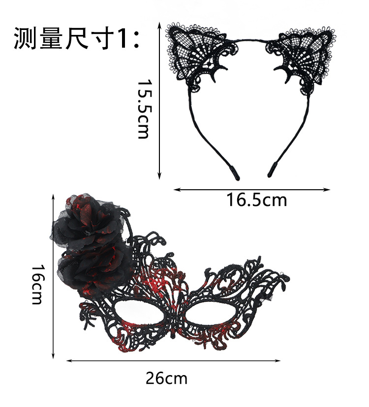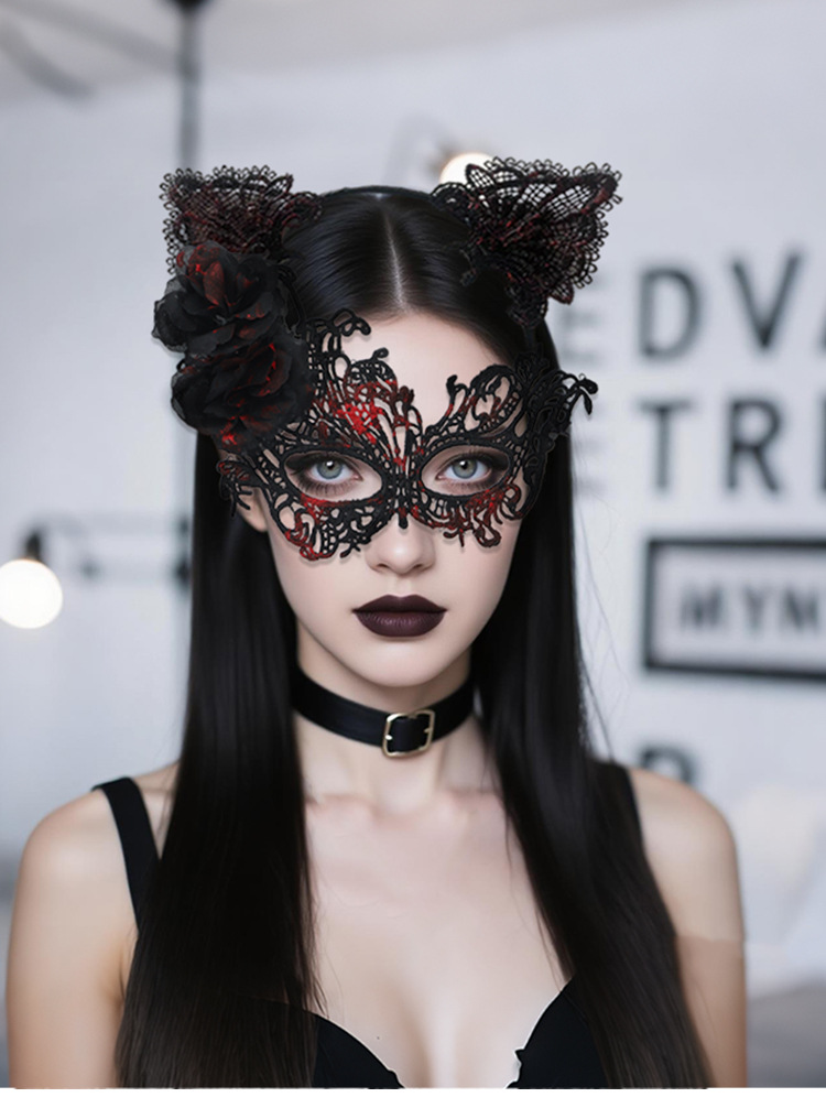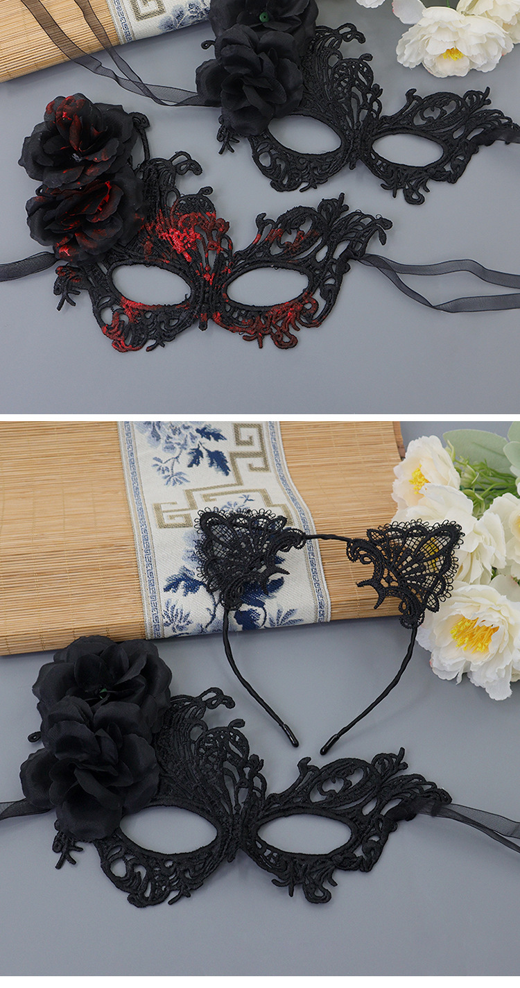 Halloween nueva máscara de encaje de rosa caliente misteriosa sexy mitad cara adorable gato orejas conjunto de banda de pelo