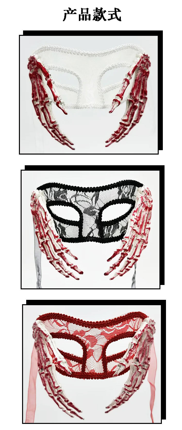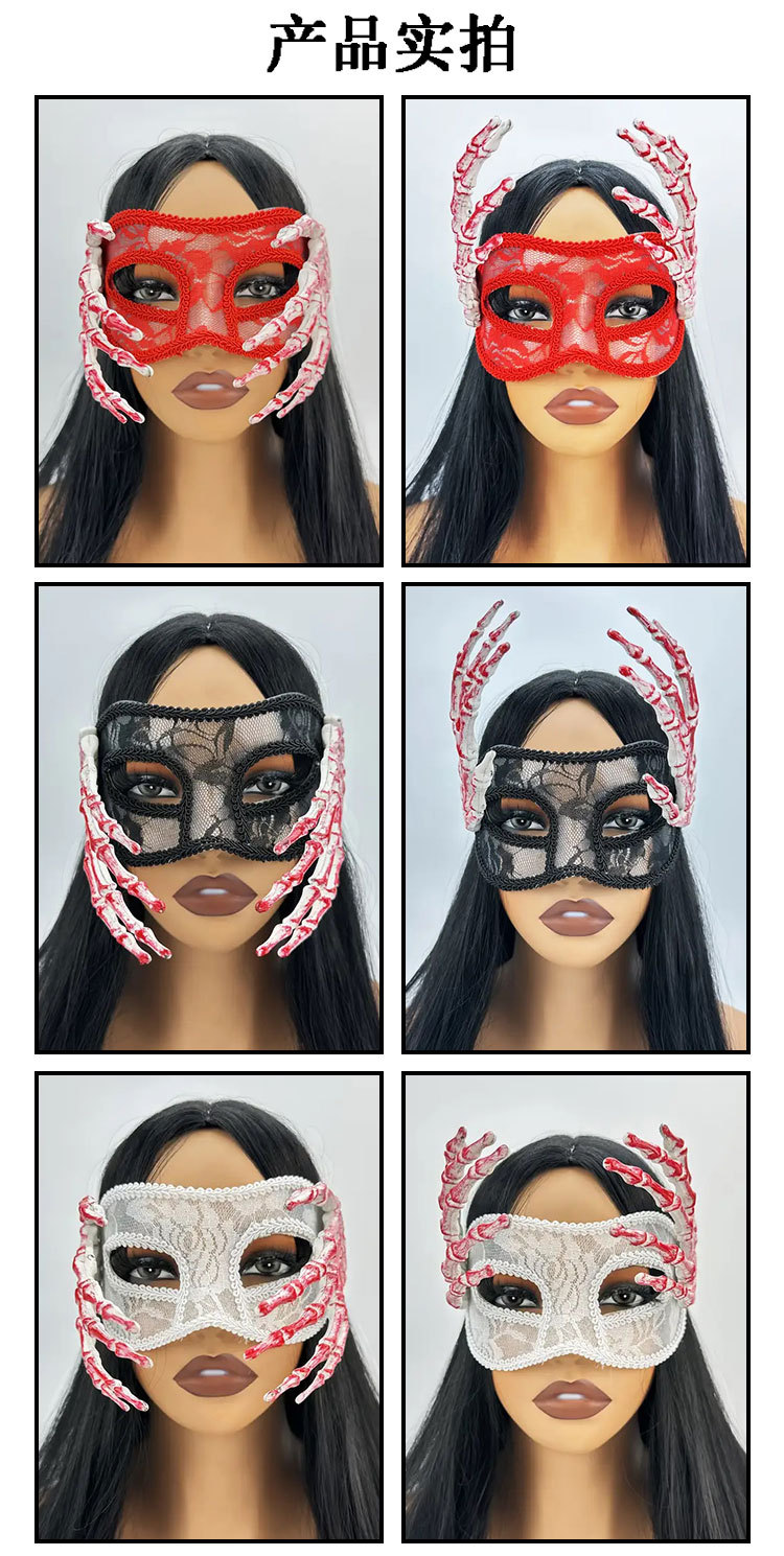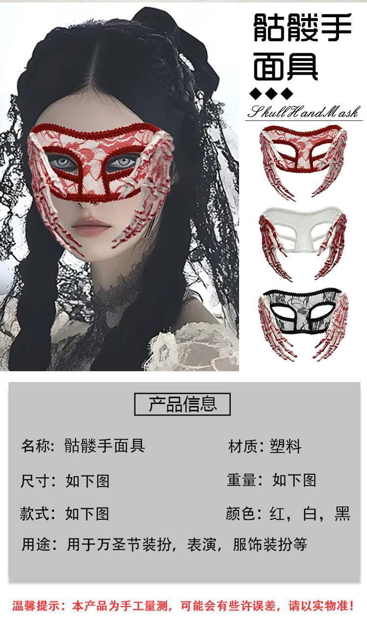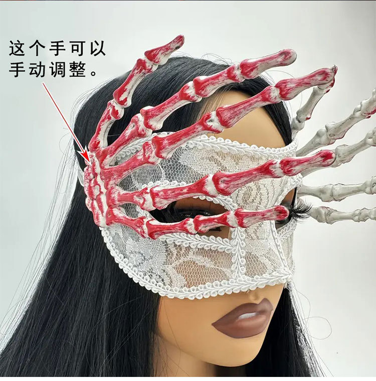 Halloween transfronterizo esqueleto mano máscara de encaje cabeza plana translúcida fiesta de baile de carnaval vestido máscara de mitad de cara