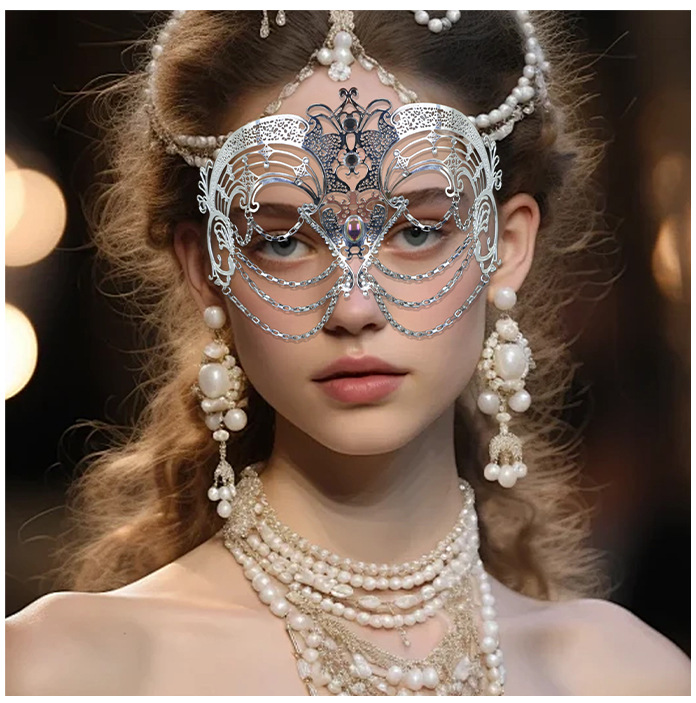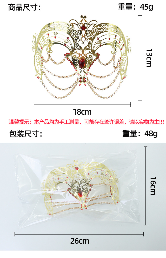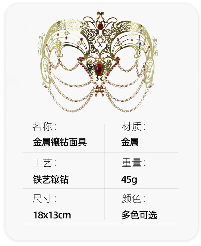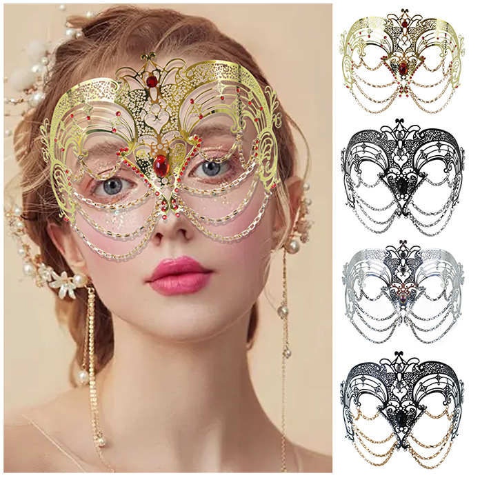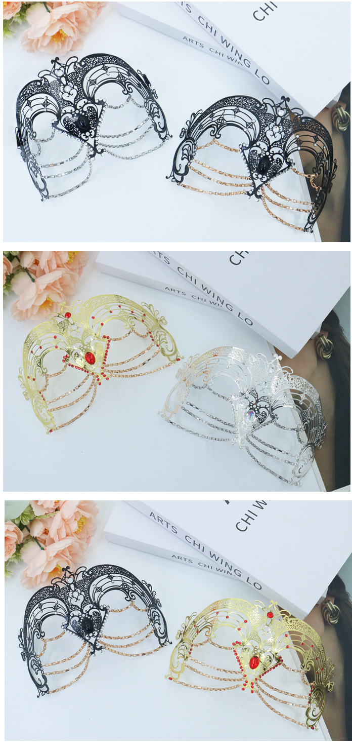 Máscaras de baile de maquillaje de cadena metálica de diamante, carnaval misterioso de alto nivel, damas en la red de viento, el mismo tipo de carretera de fotos