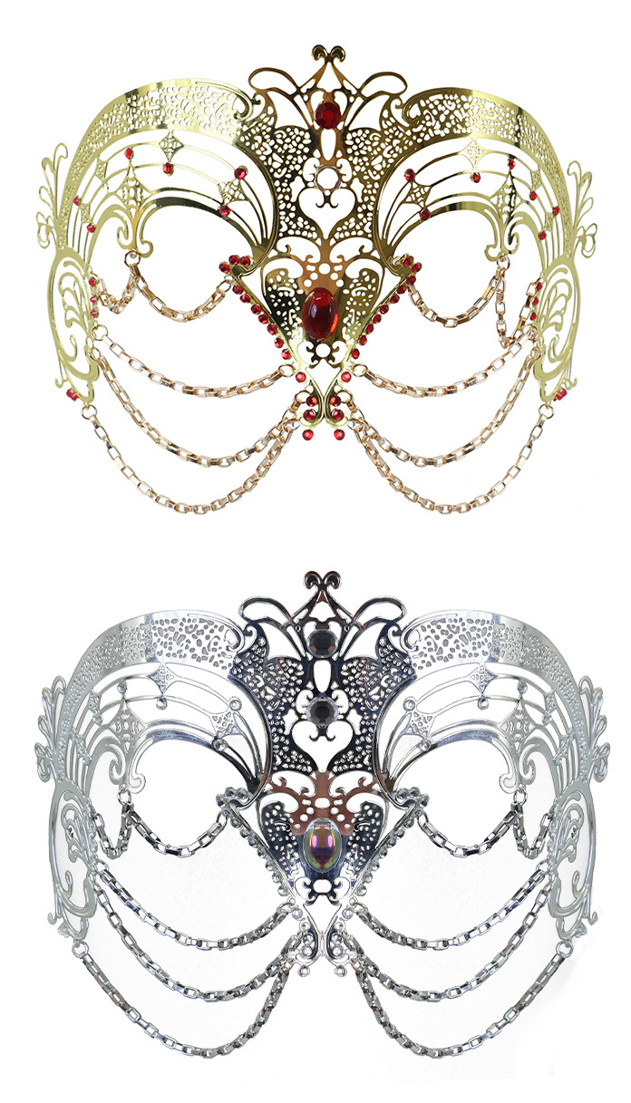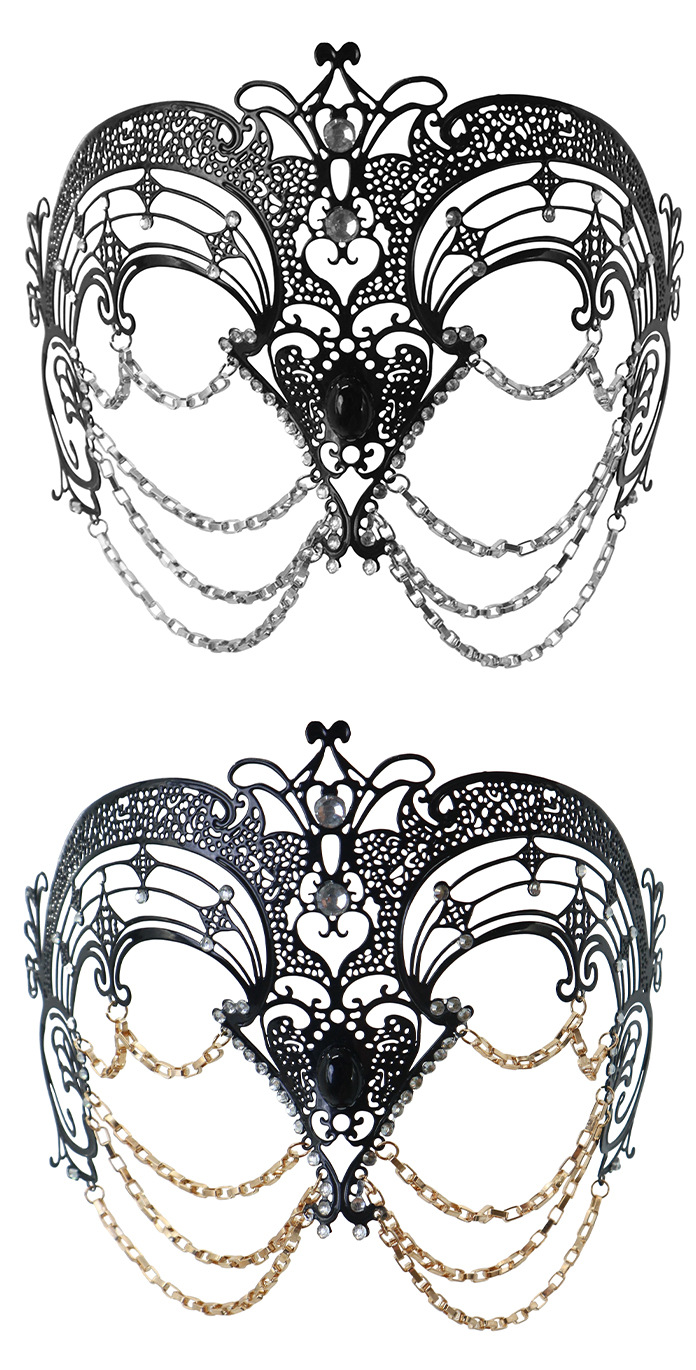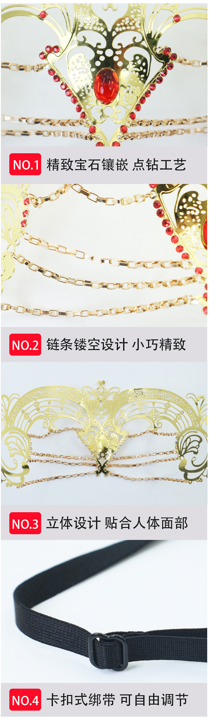 Máscaras de baile de maquillaje de cadena metálica de diamante, carnaval misterioso de alto nivel, damas en la red de viento, el mismo tipo de carretera de fotos