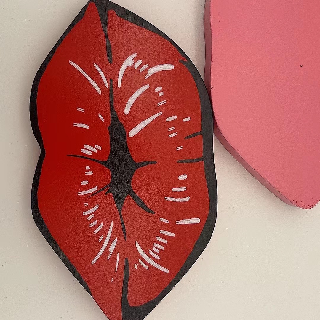 Transfronterizo popular Día de San Valentín gran labio rojo decoración de madera hogar ambiente decoración romántica