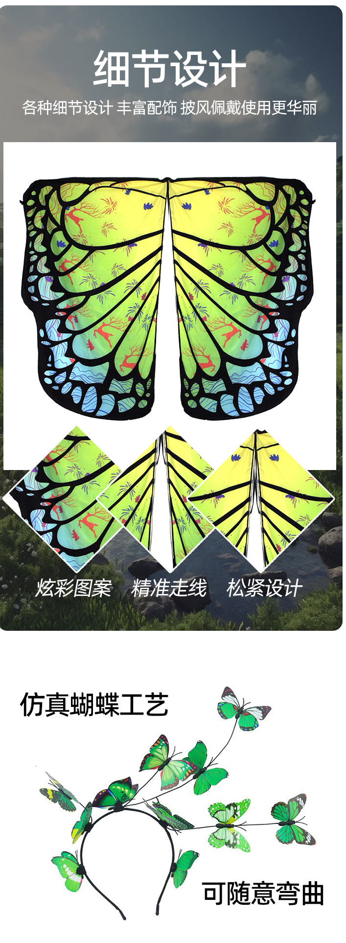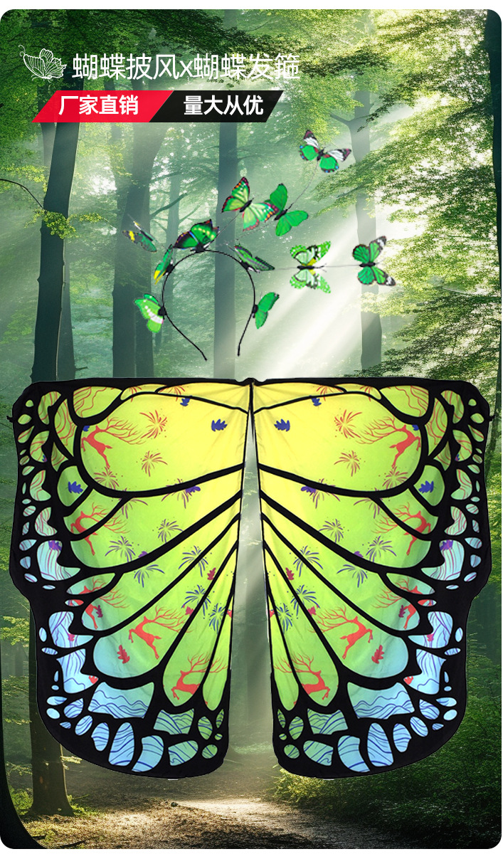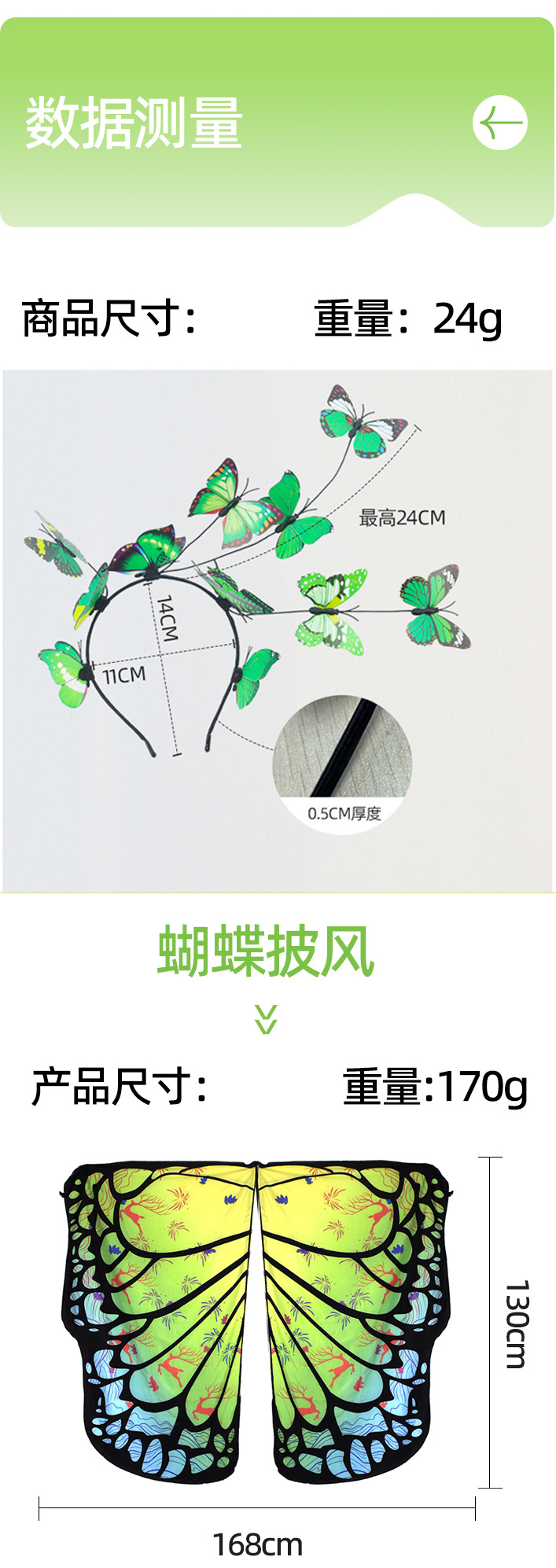 | Color | Capa de mariposa + banda de cabello, capa de mariposa, banda de cabello de mariposa - verde |