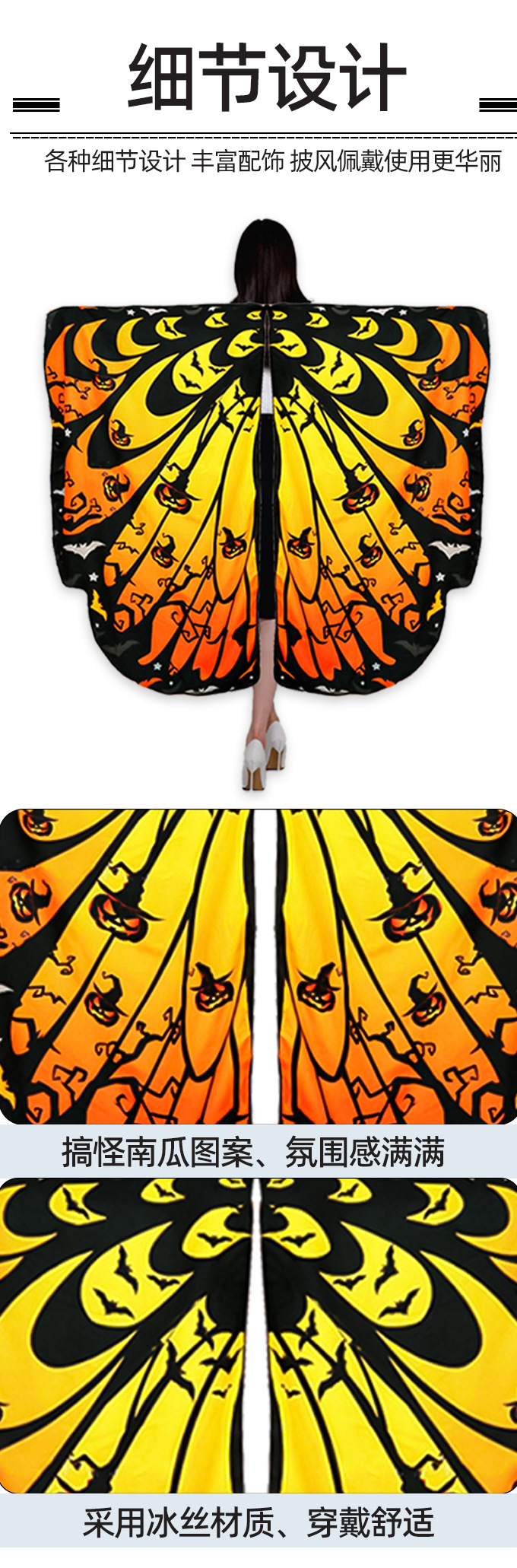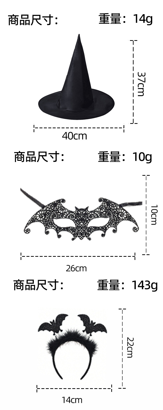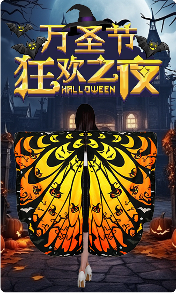 | Color | Capa de calabaza de Halloween, capa de murciélago de Halloween, capa de fantasma de Halloween, banda de pelo de murciélago, sombrero de mago, máscara de murciélago de encaje |