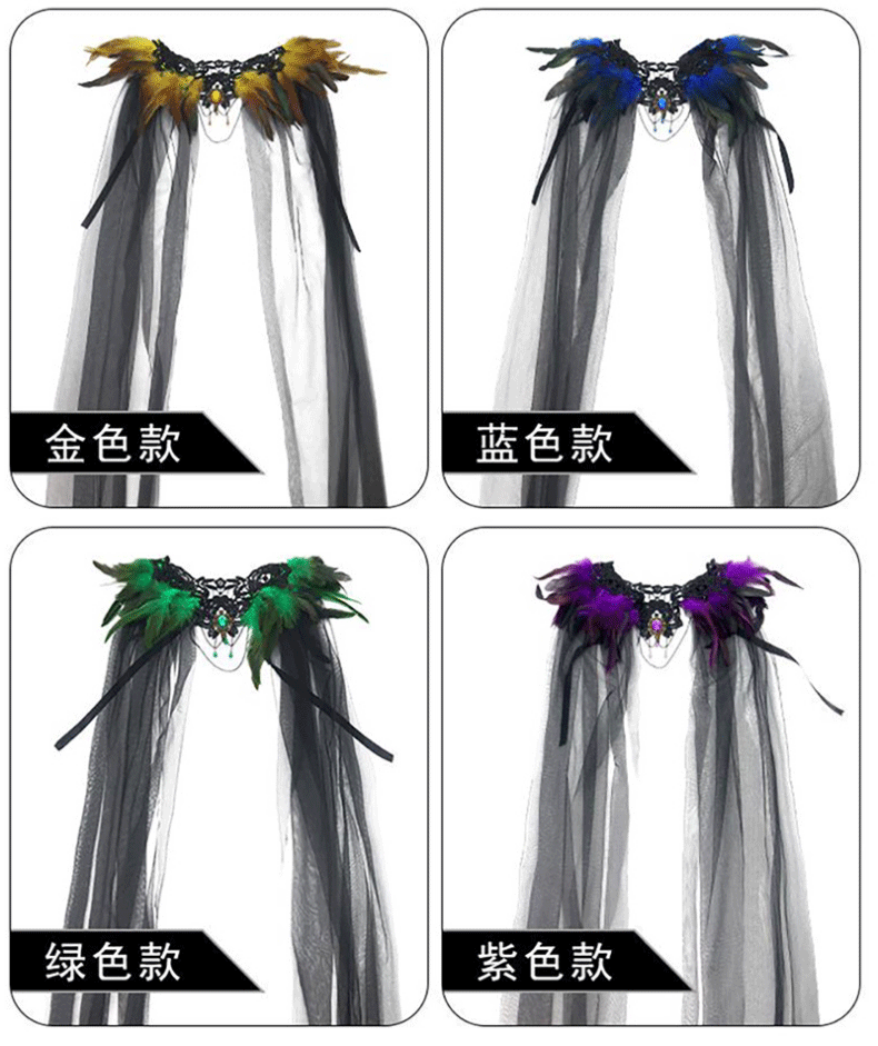 | Número de artículo | Pluma gótica decoración de encaje de chale de cuero máscara de diamante |