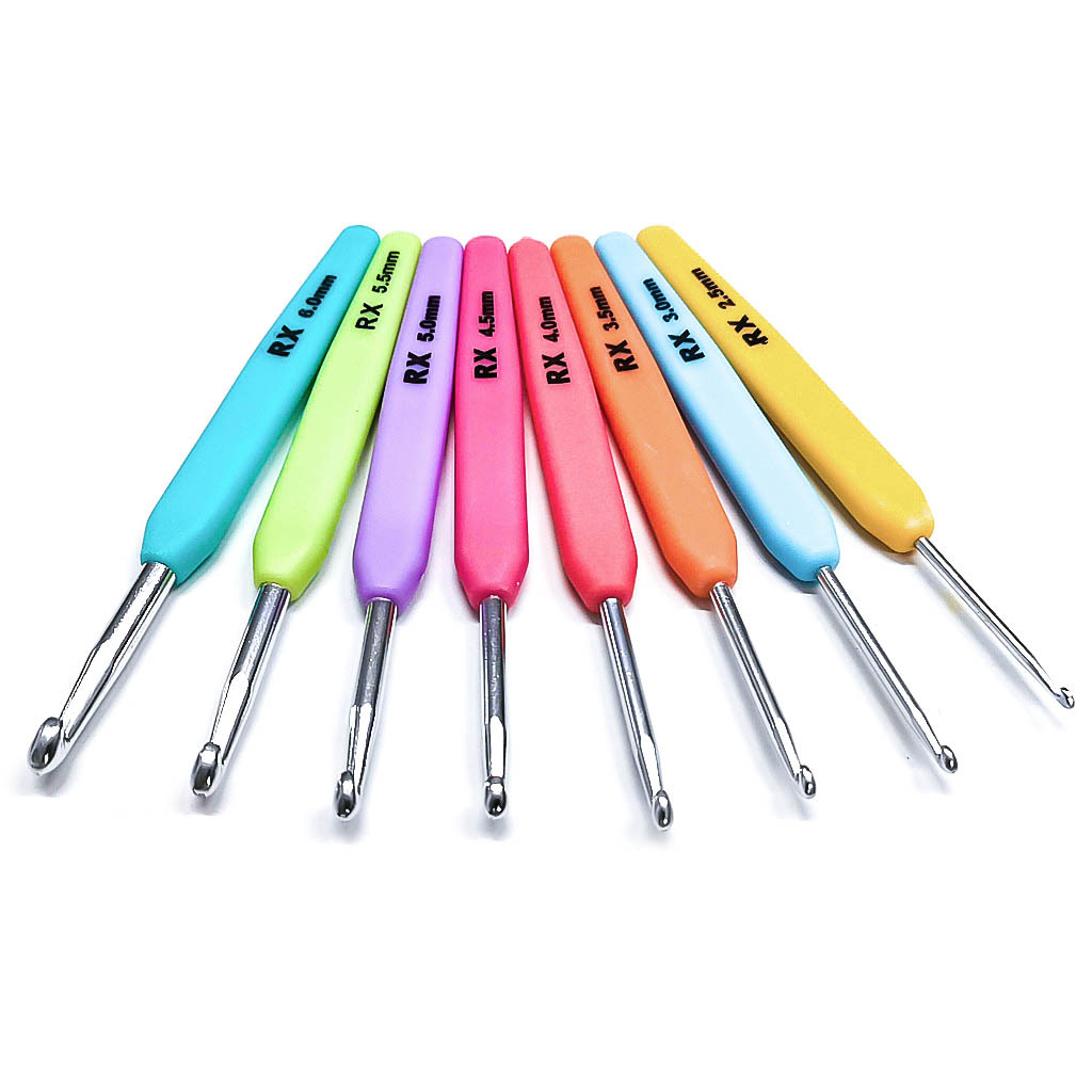 Herramienta de tejer aguja suéter de color mango de plástico gancho de aluminio aguja pluma crochet conjunto de 8 OPP bolsa de embalaje