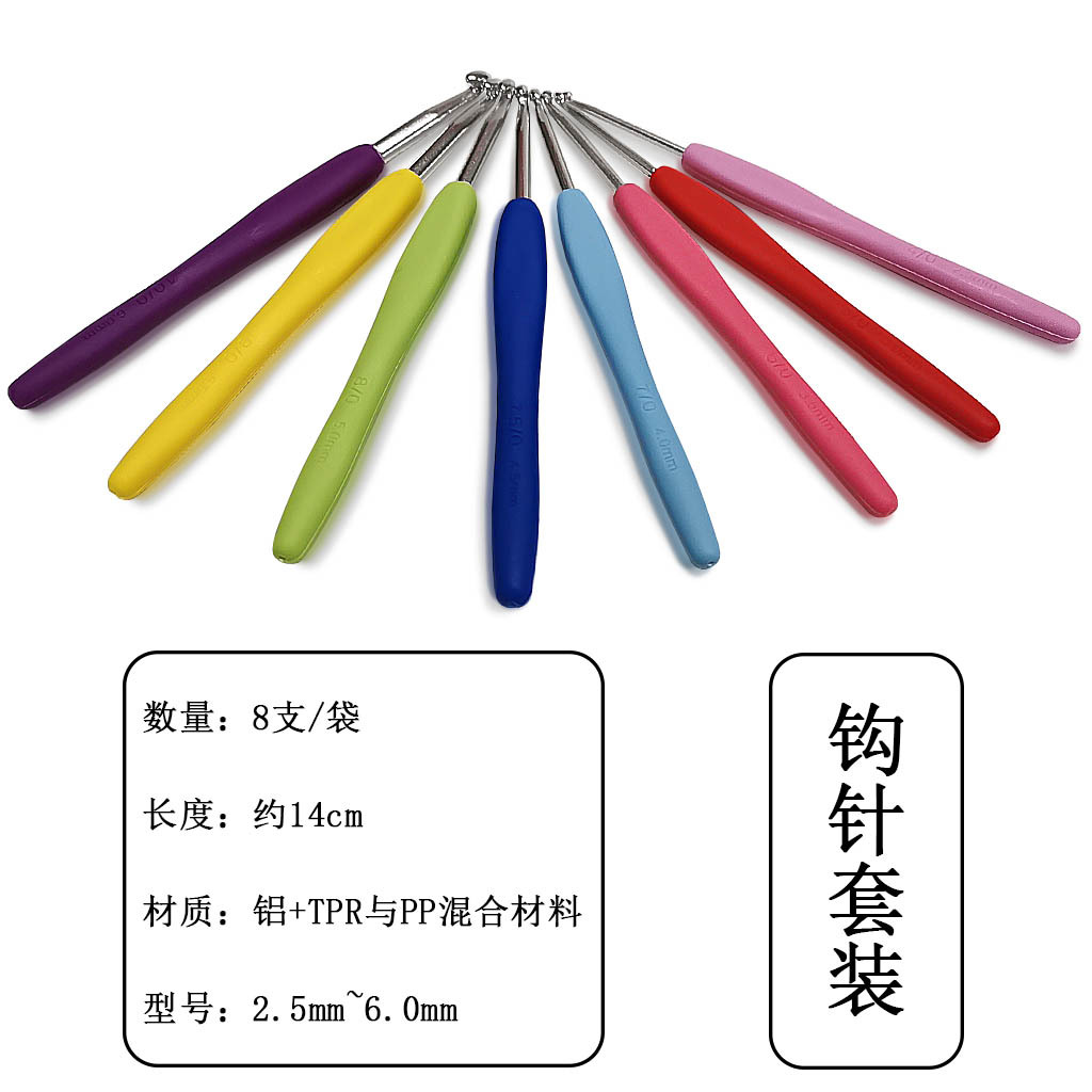 Suéter aguja herramienta de tejer color caramelo suave mango de ganchillo color suave mango de aluminio crochet conjunto de 8 piezas