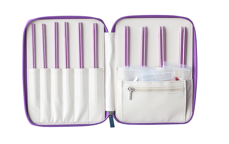 Herramientas de tejido aguja de suéter mango de plástico de color pegado aguja de acero conjunto completo 17 bolsas antideslizantes