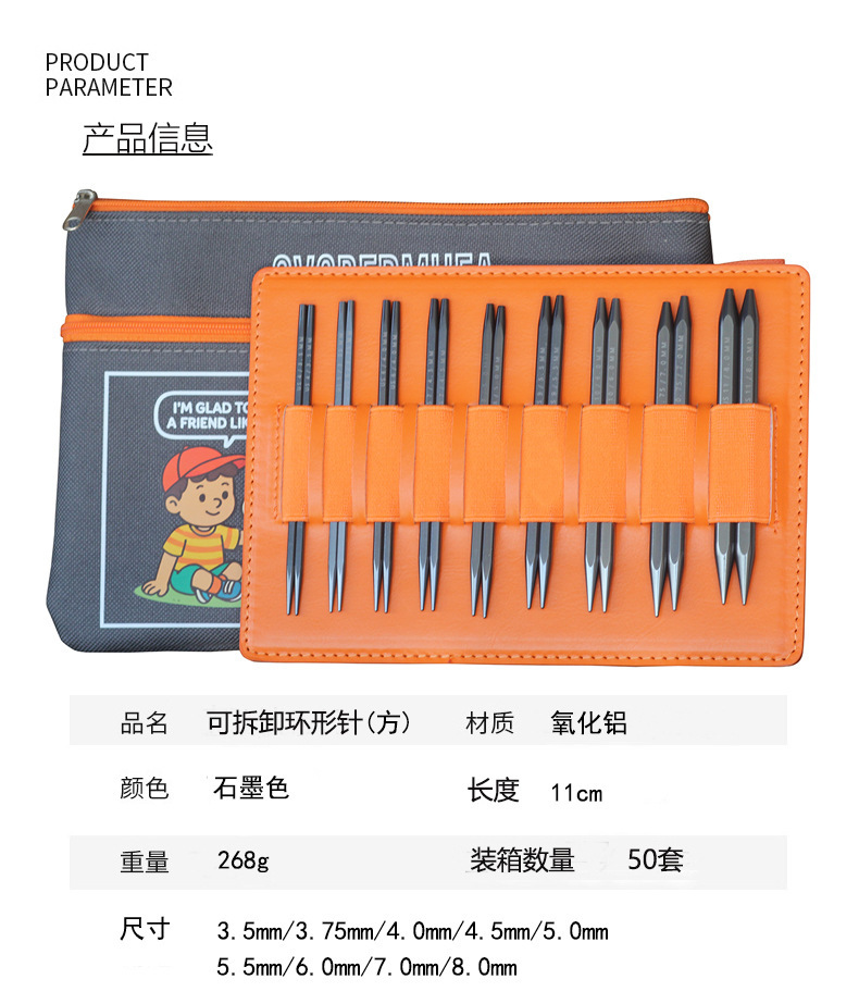 Herramientas de tejido QVCBF 11cm de alúmina cuadrada aguja de suéter desmontable política 9 paquete 3.5mm-8.0mm