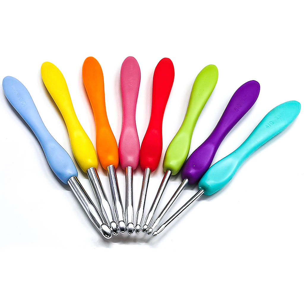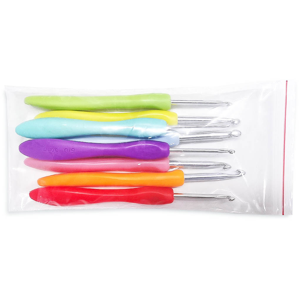 Herramientas de punto suéter aguja Arco Iris mango suave plástico alúmina ganchillo un conjunto de 8 bolsas