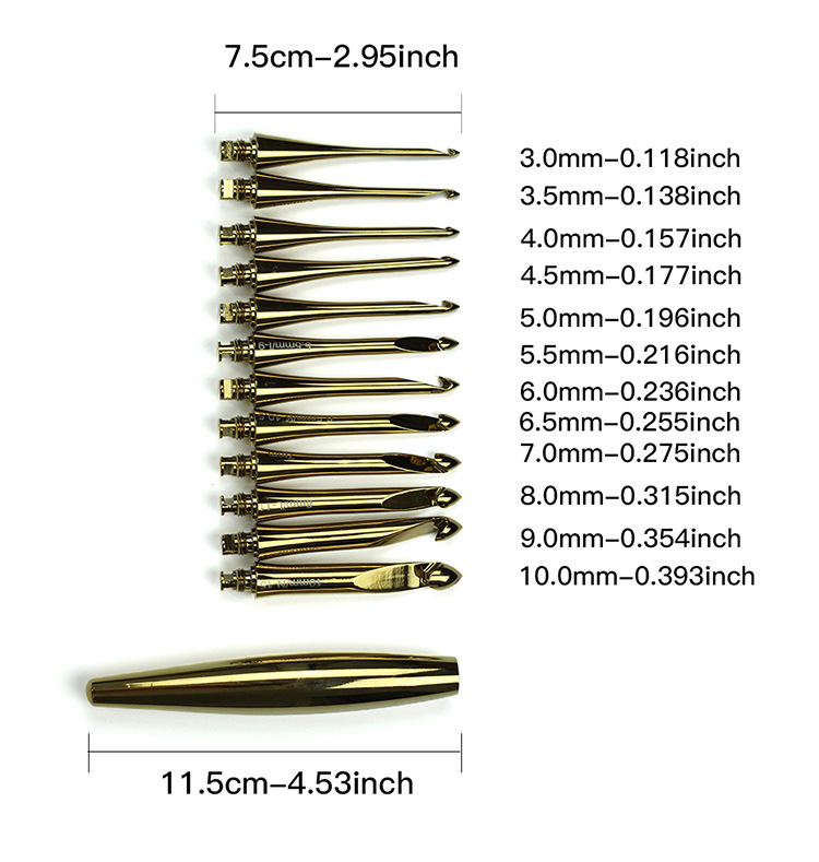 Herramientas de tejido transfronterizas de alúmina dorada desmontable ganchillo de cambio de aguja un conjunto de 12 cabezas de gancho