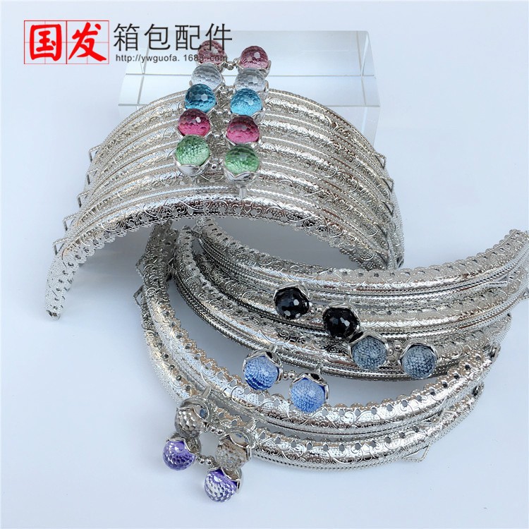 12.5cm半圆压花花边荷花头珊瑚珠口金 银色 10色可选 0063-YS