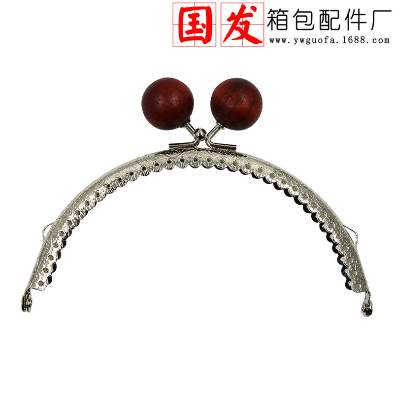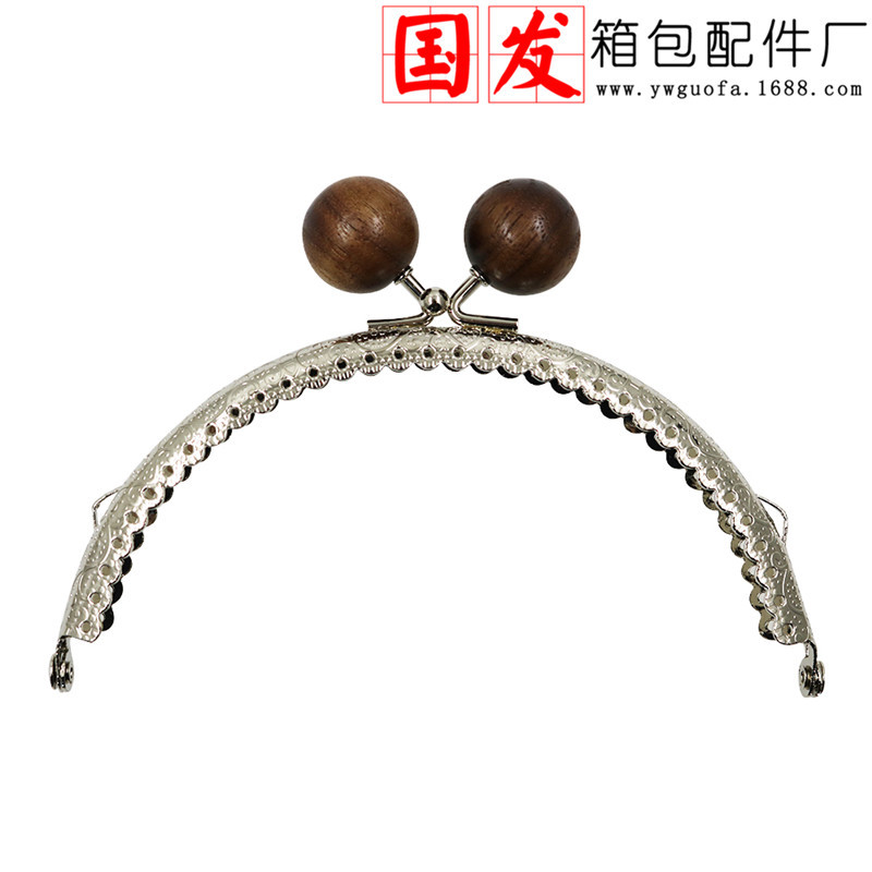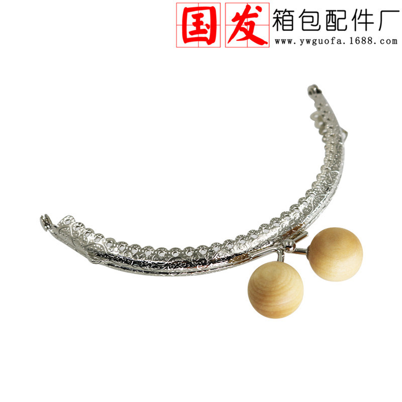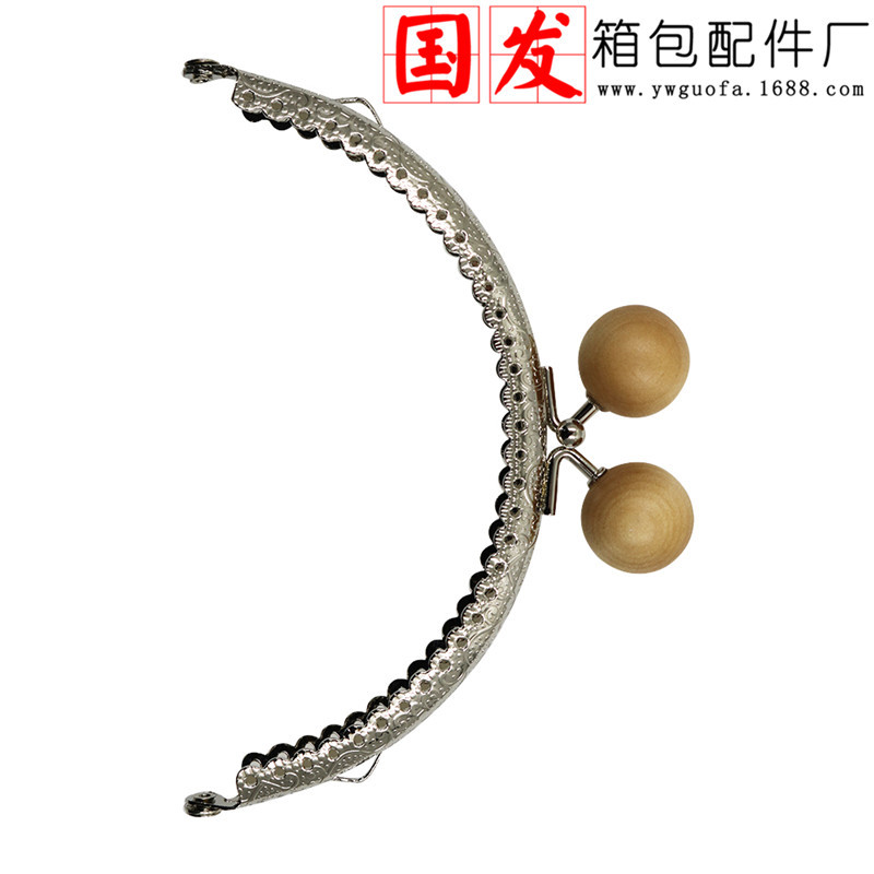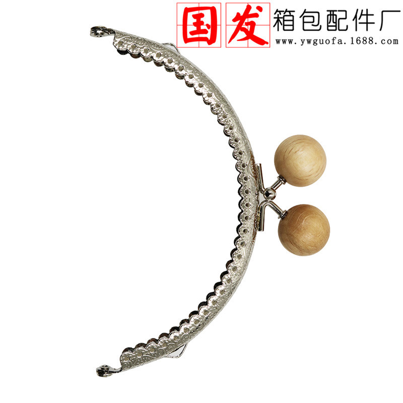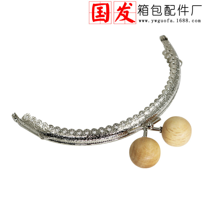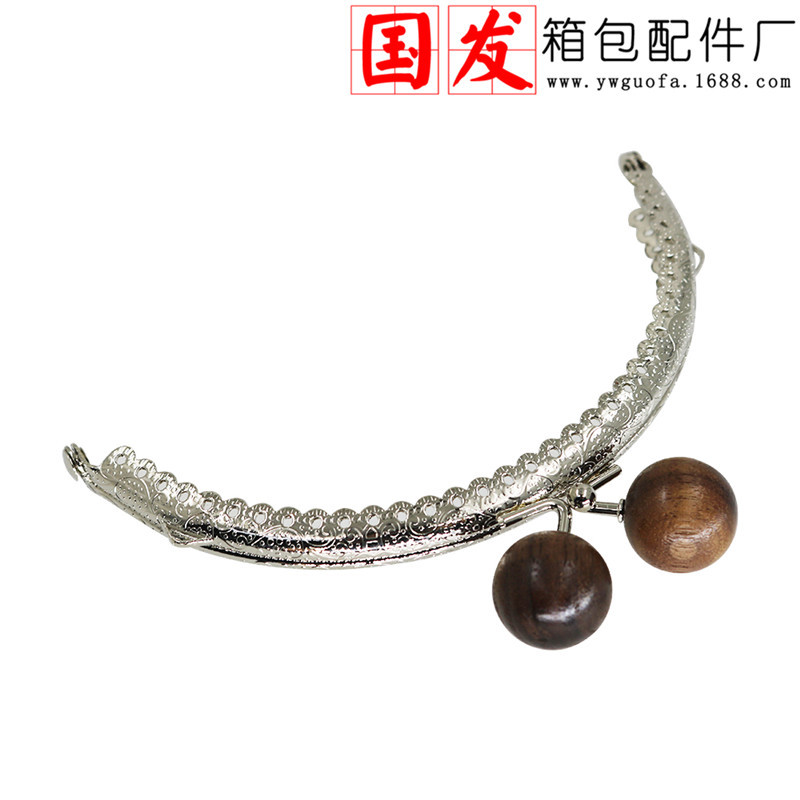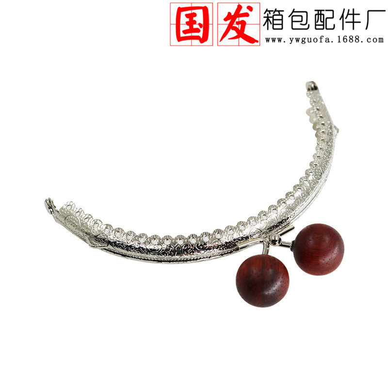 银色双耳 12.5CM半圆压花花边木珠口金批发 20MM实木4色 糖果头
