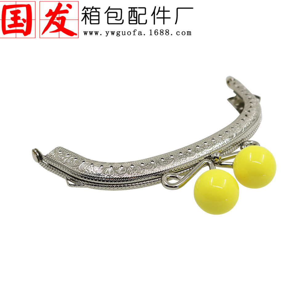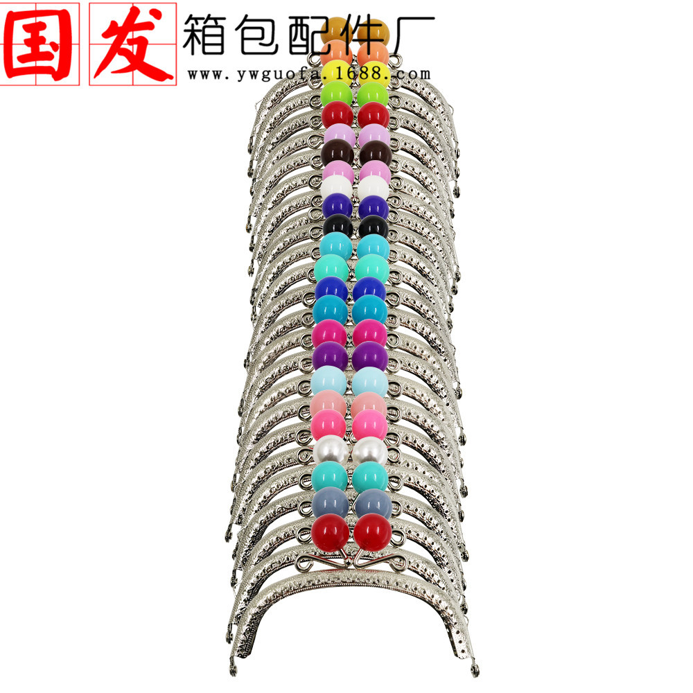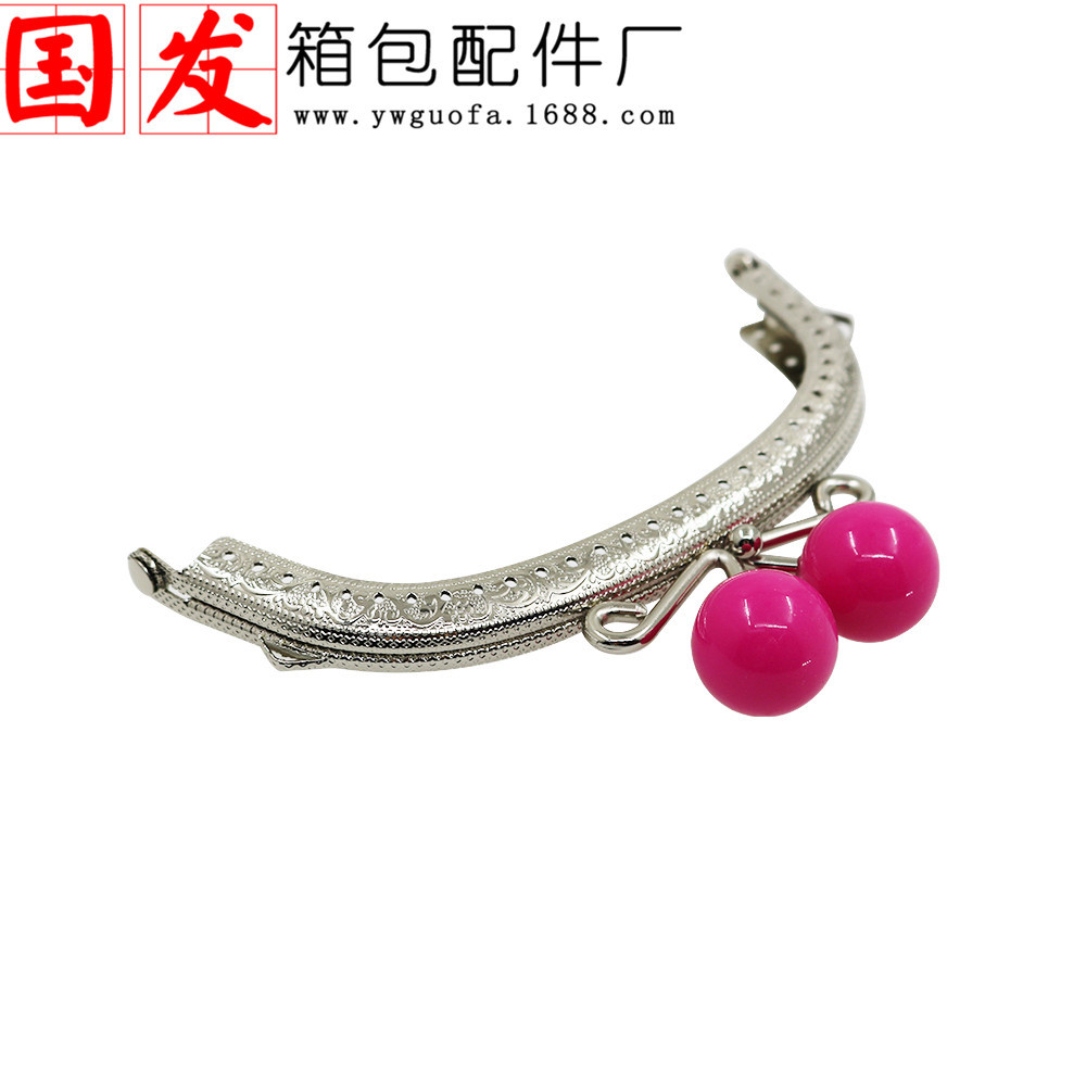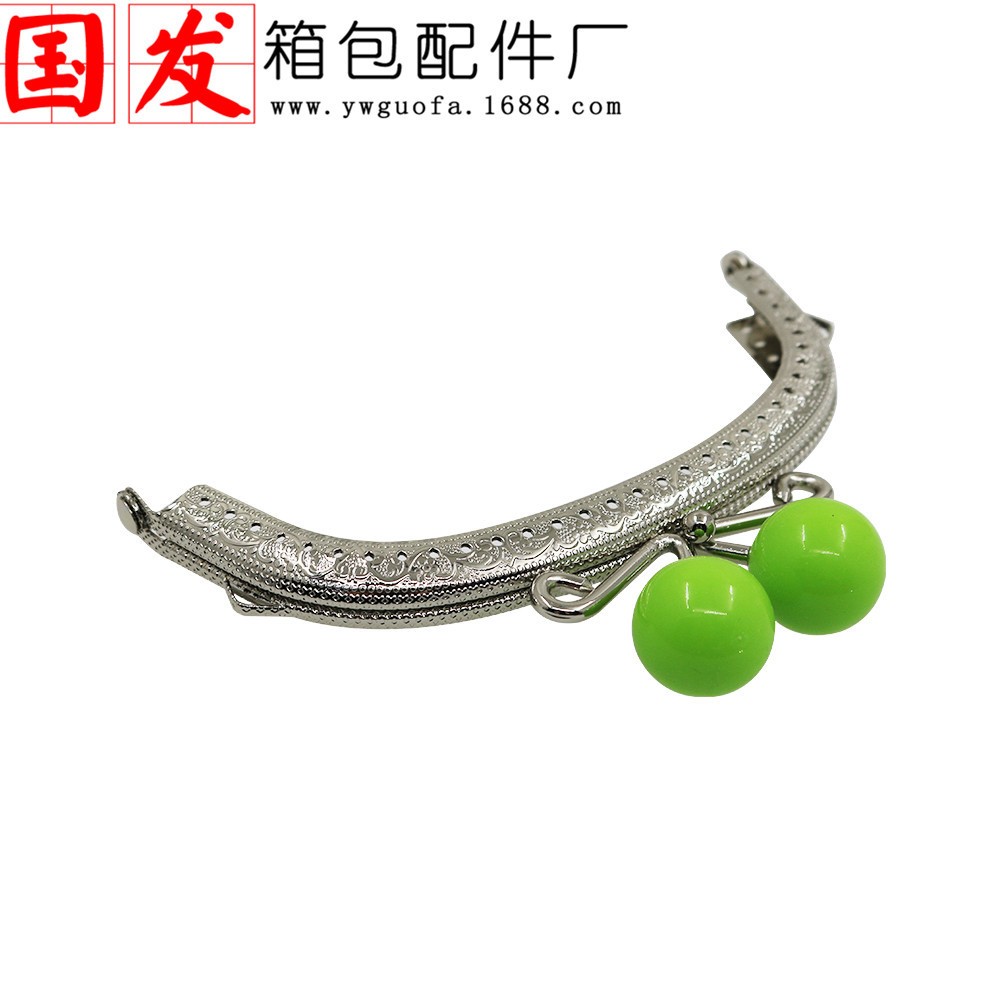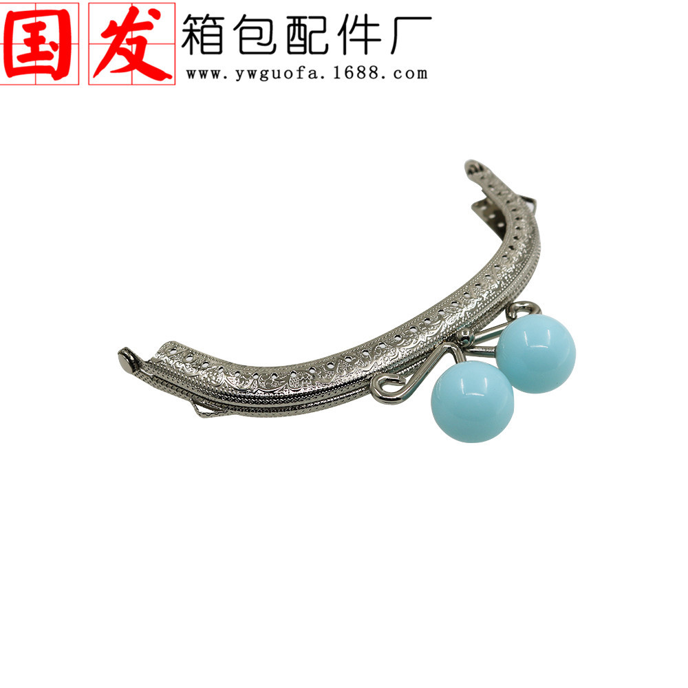 银色双耳12.5CM弧形压花糖果头口金 20MM珠头糖果色【卷卷头】