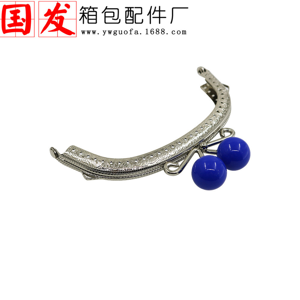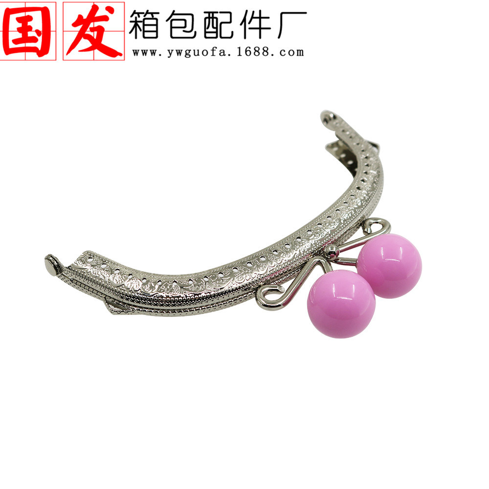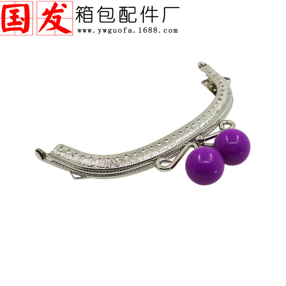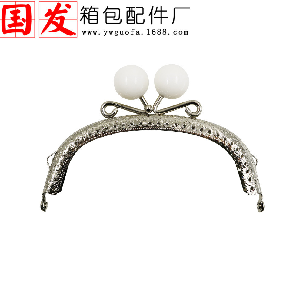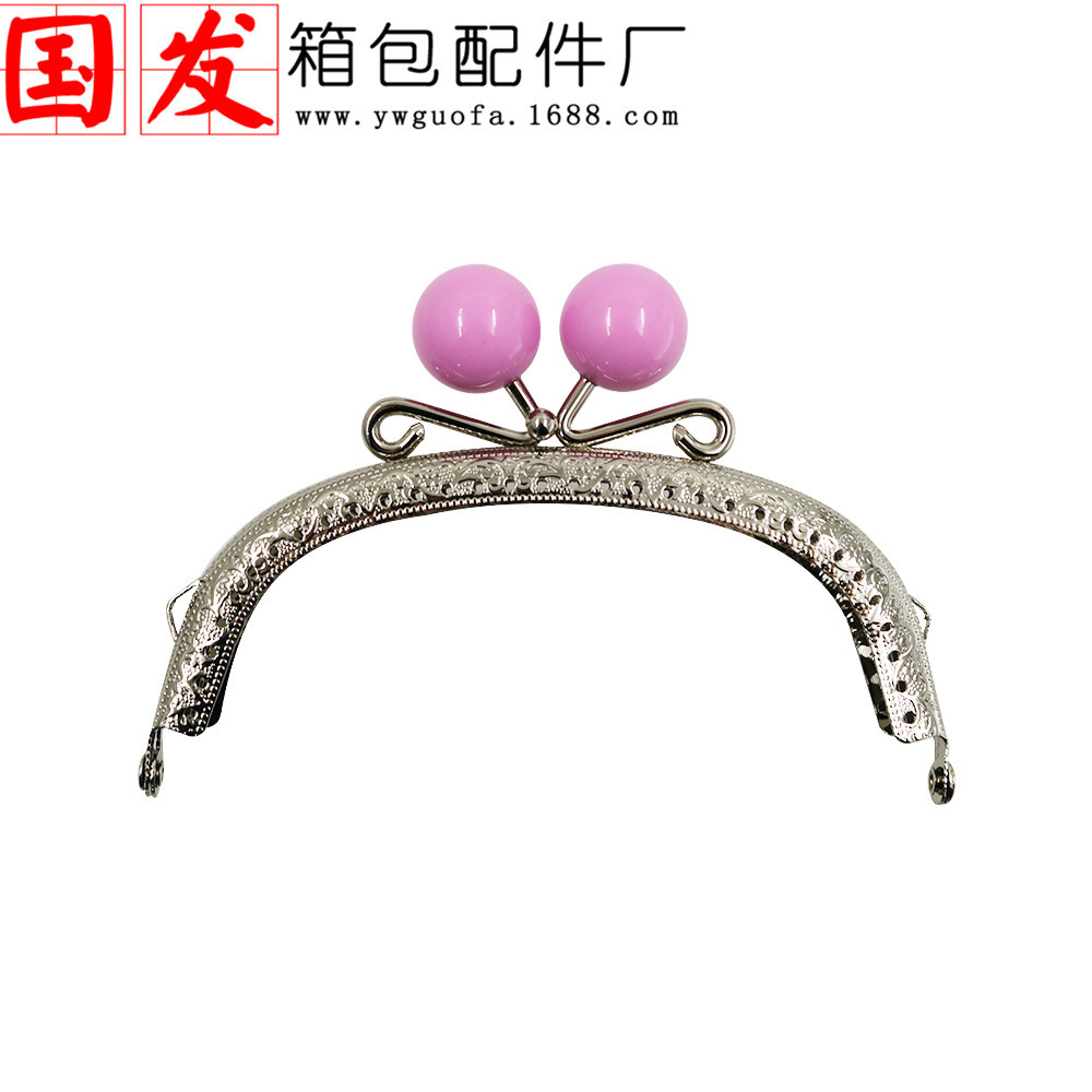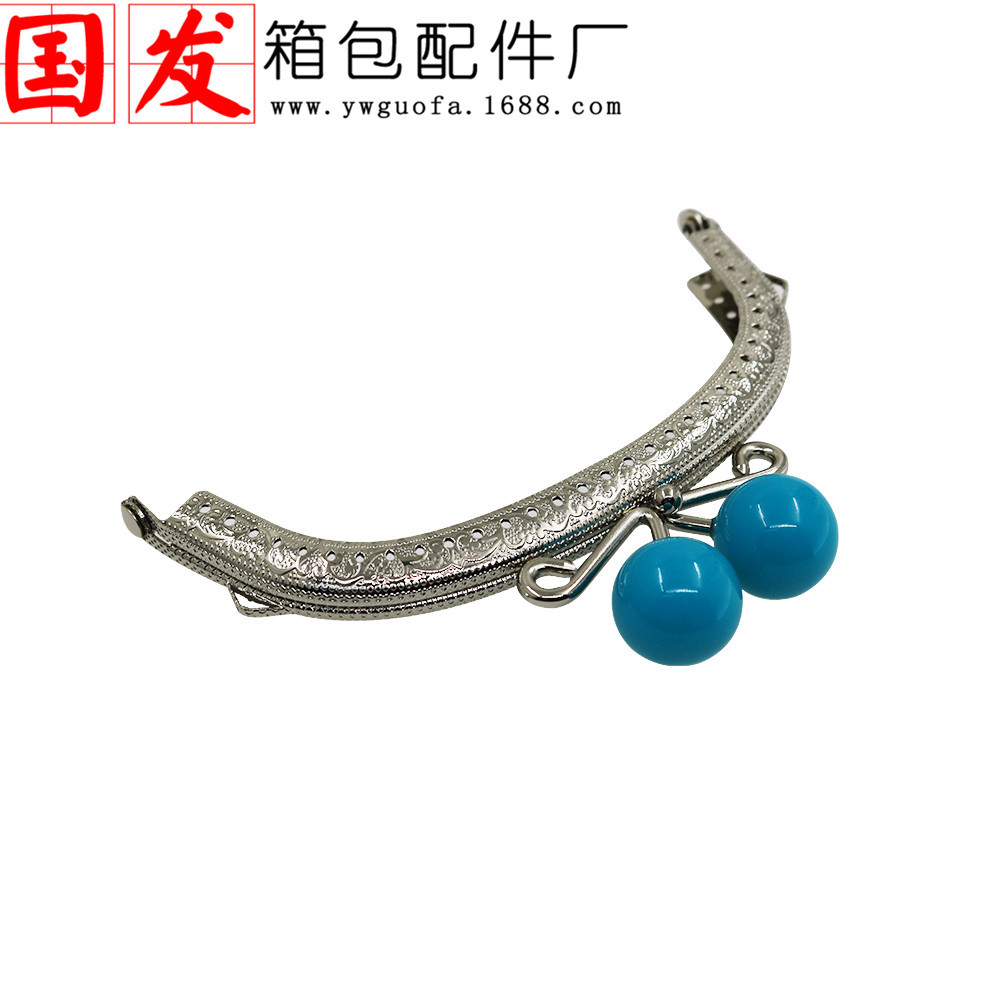 银色双耳12.5CM弧形压花糖果头口金 20MM珠头糖果色【卷卷头】
