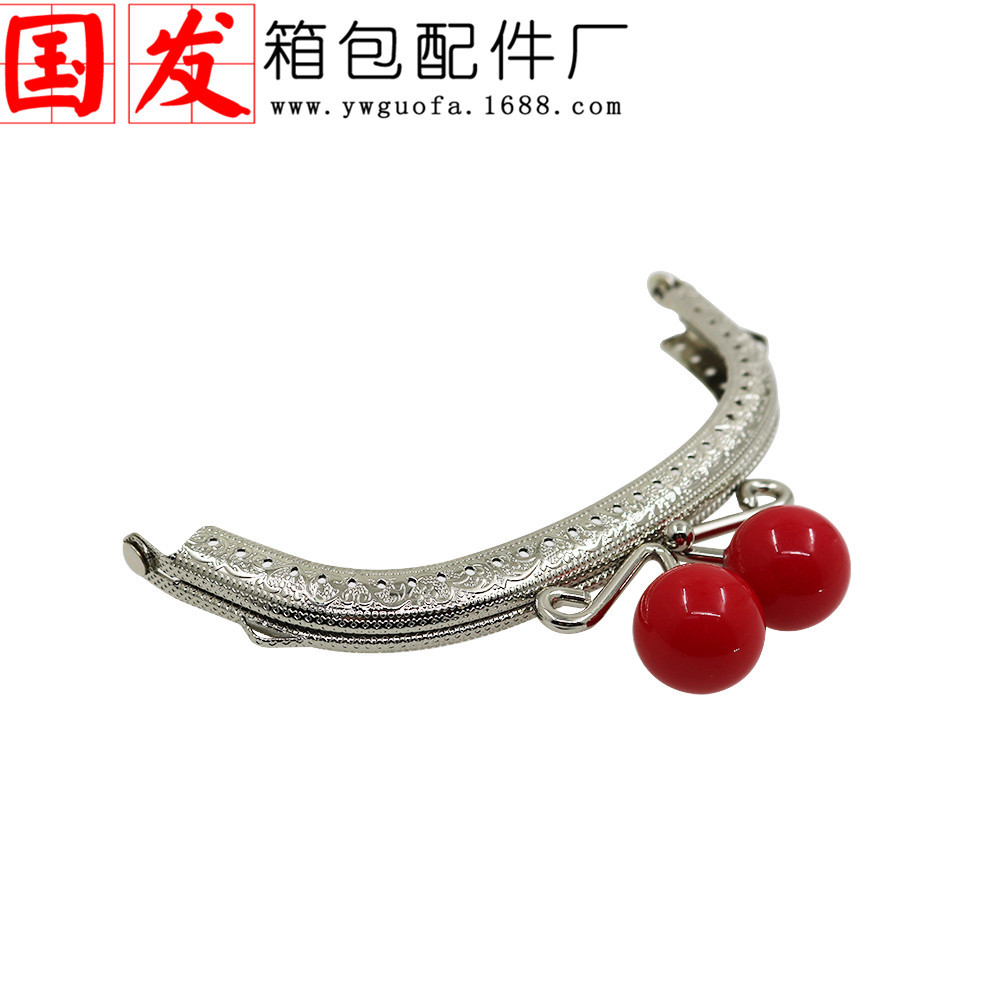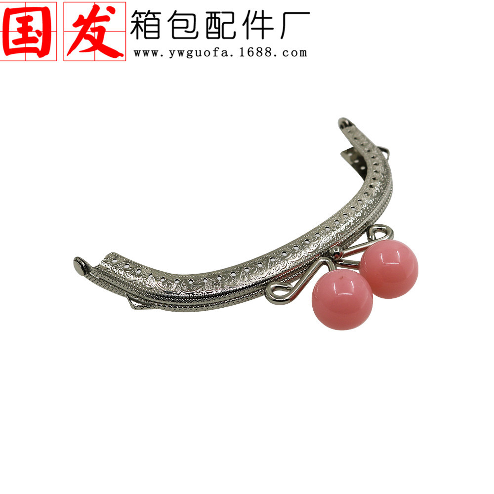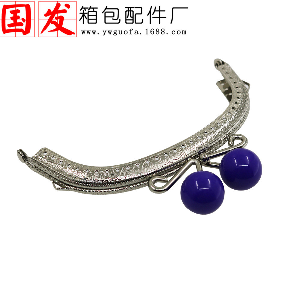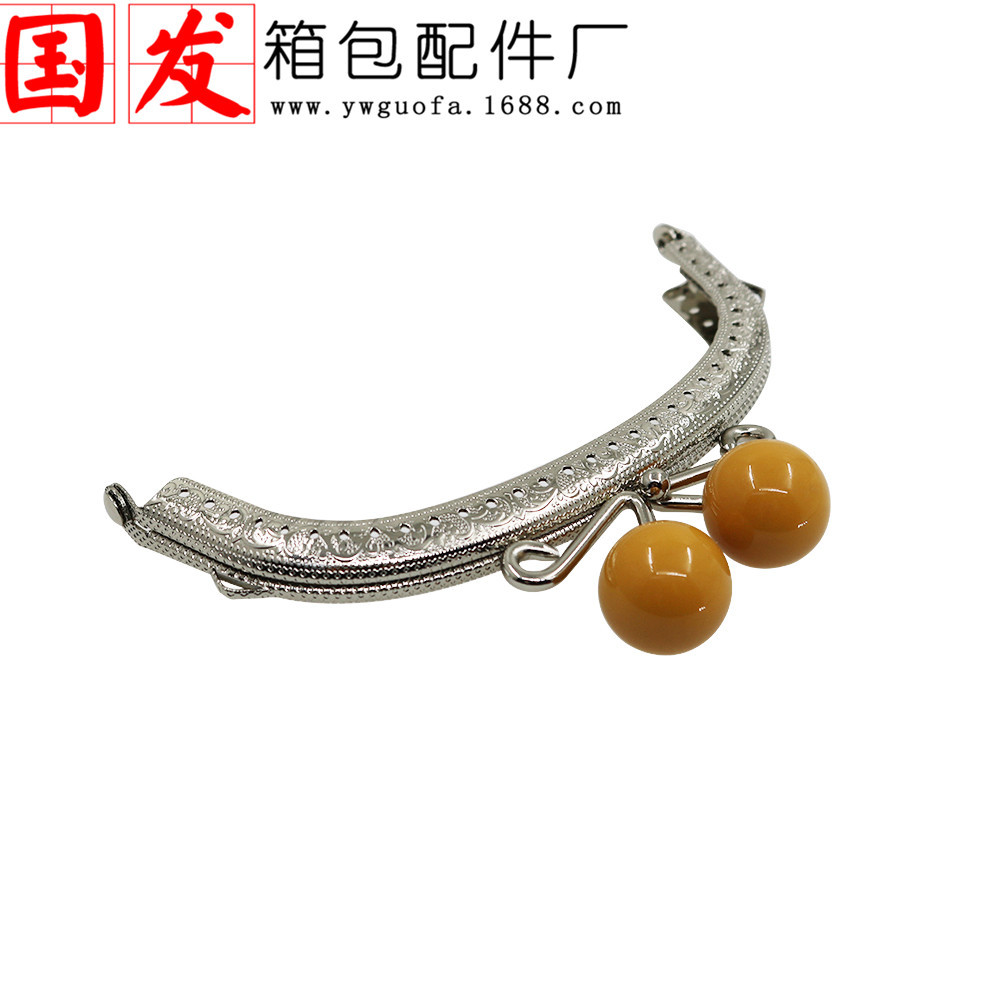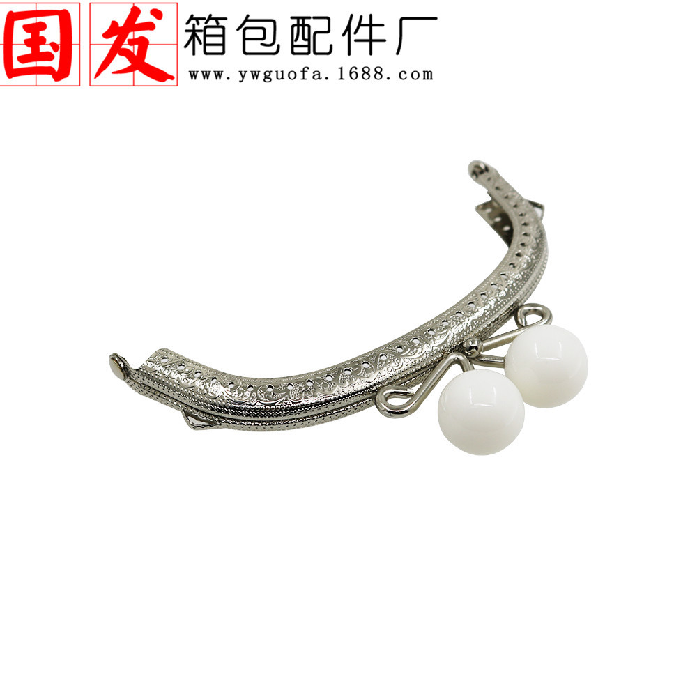 银色双耳12.5CM弧形压花糖果头口金 20MM珠头糖果色【卷卷头】