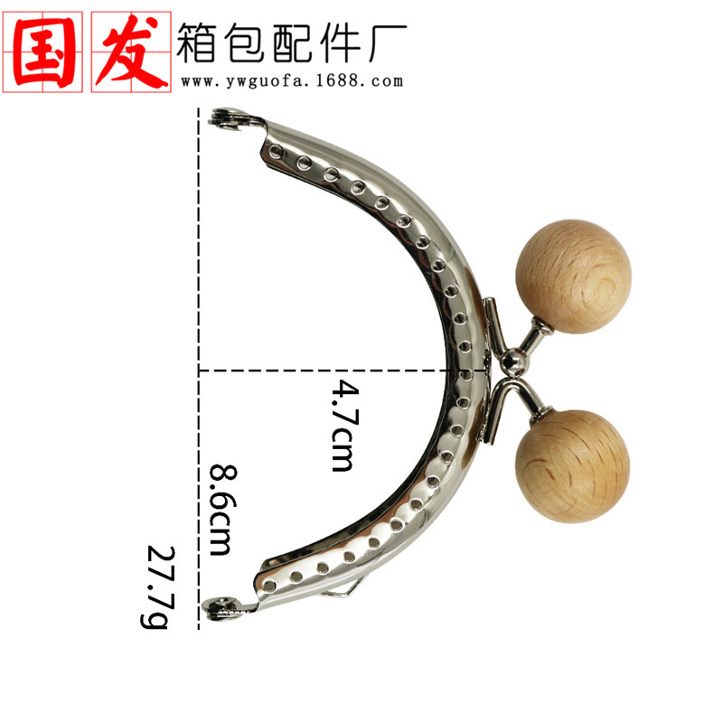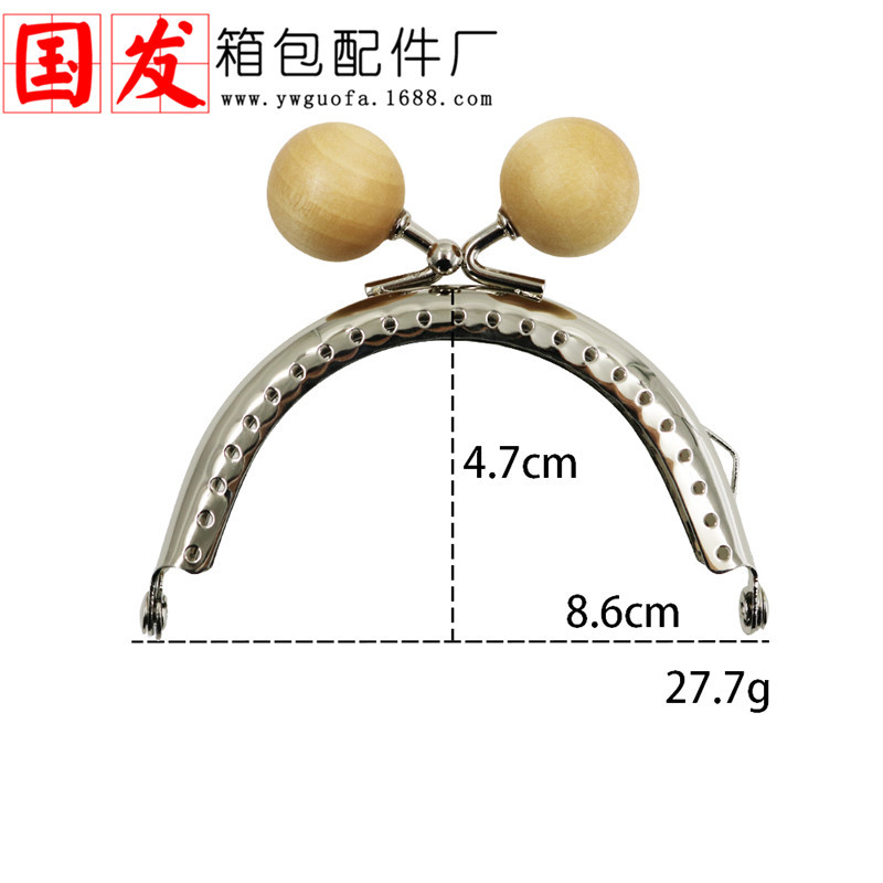 单耳8.5cm半圆光面木珠口金 20MM木珠 糖果头 【银色】口金包配件