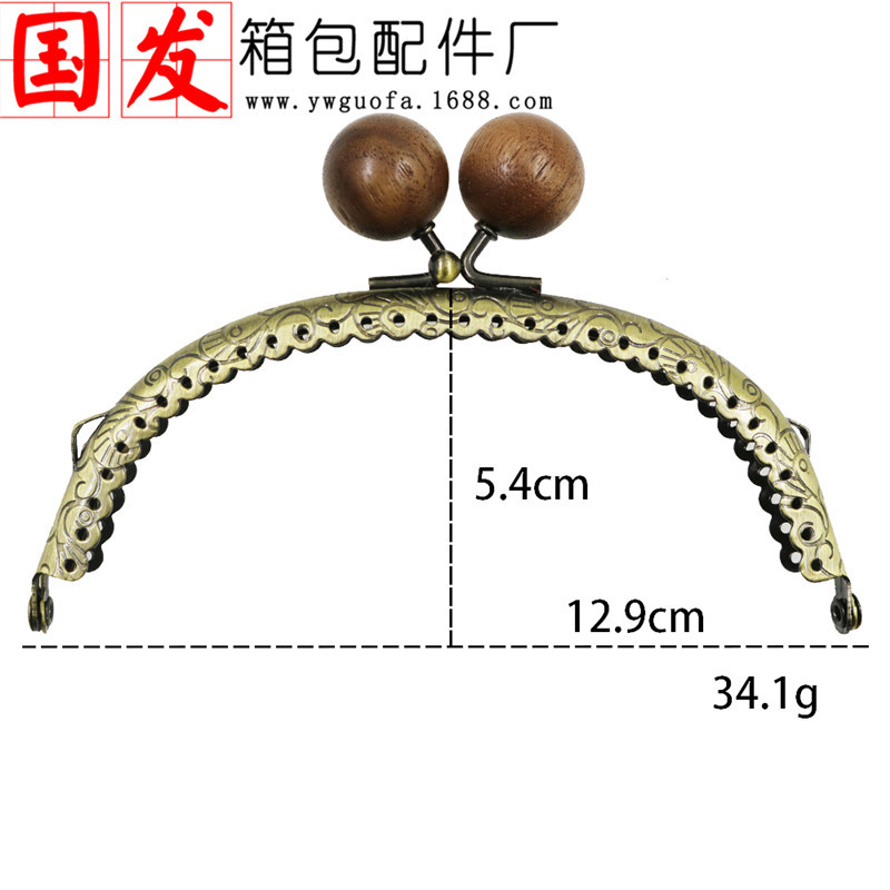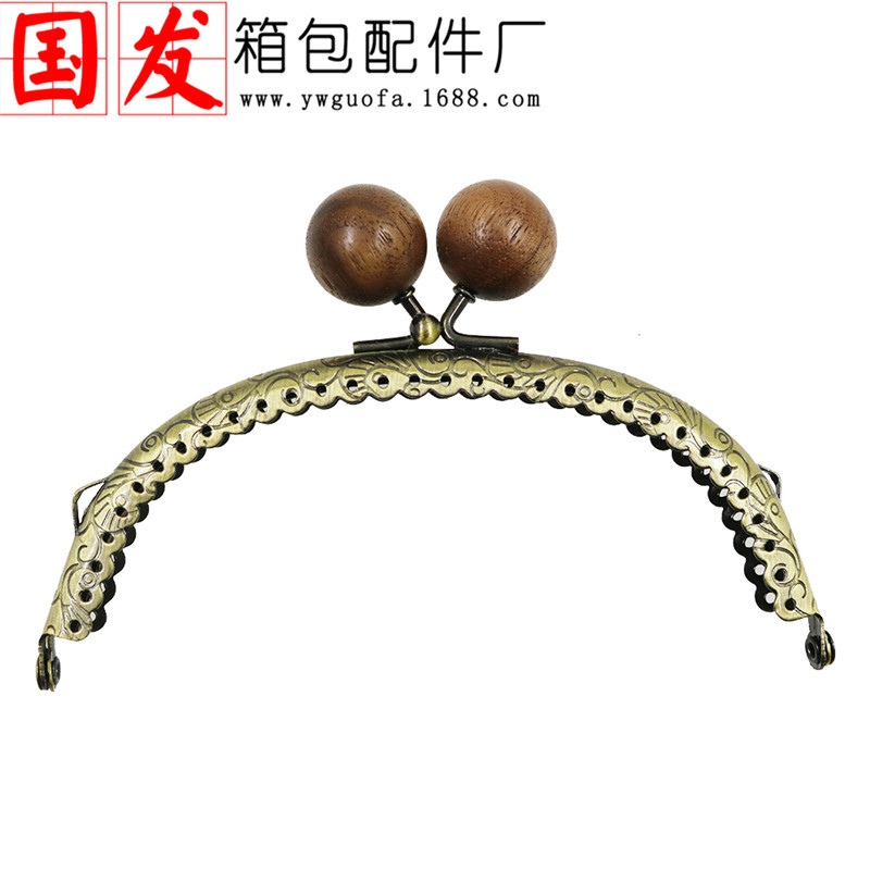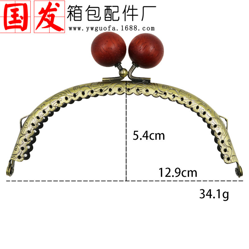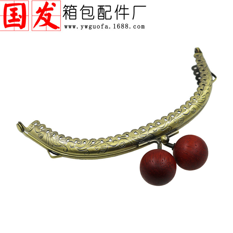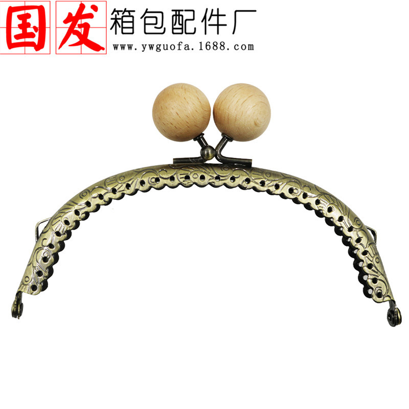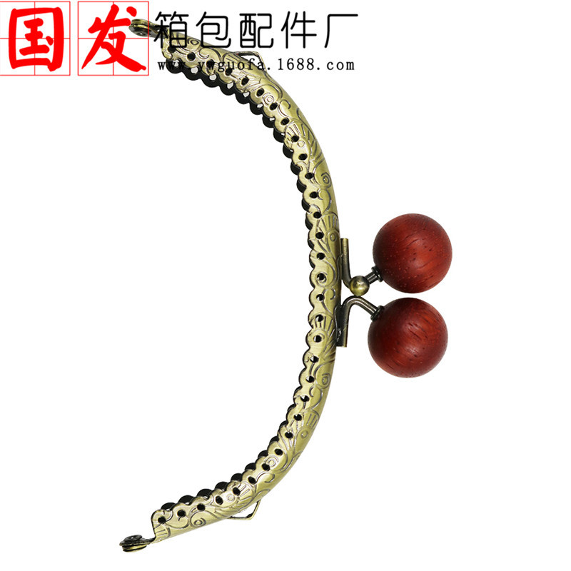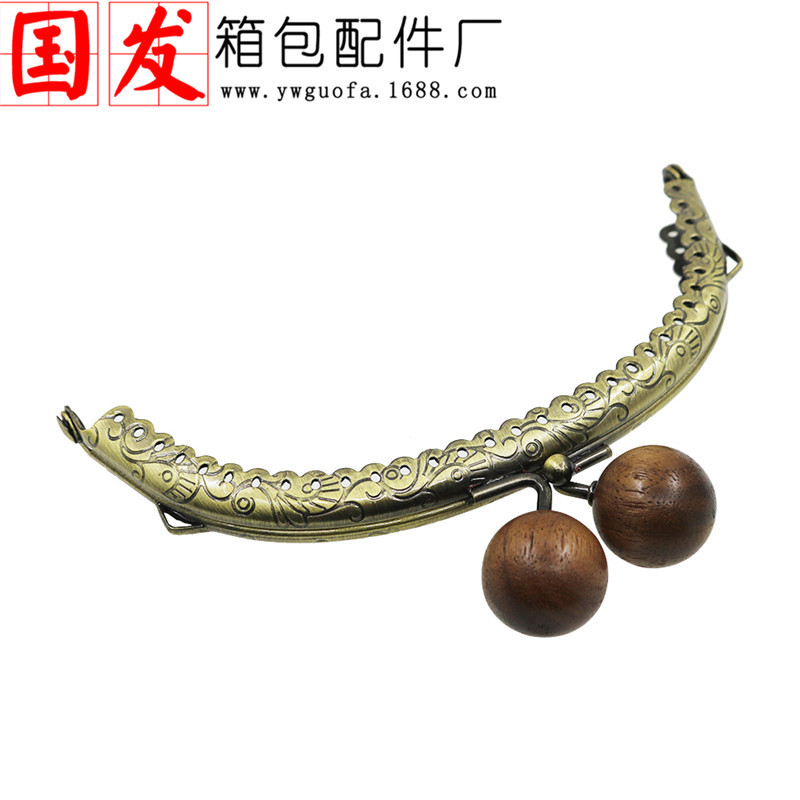 双耳12.5cm弧形龙凤花花边木珠口金 20MM实木 日式糖果珠 4色可选