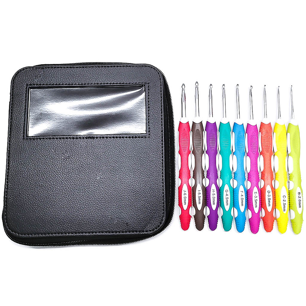 Suéter aguja herramienta de tejer TPRABS doble color mango de aluminio crochet conjunto de 9 bolsas de Pu