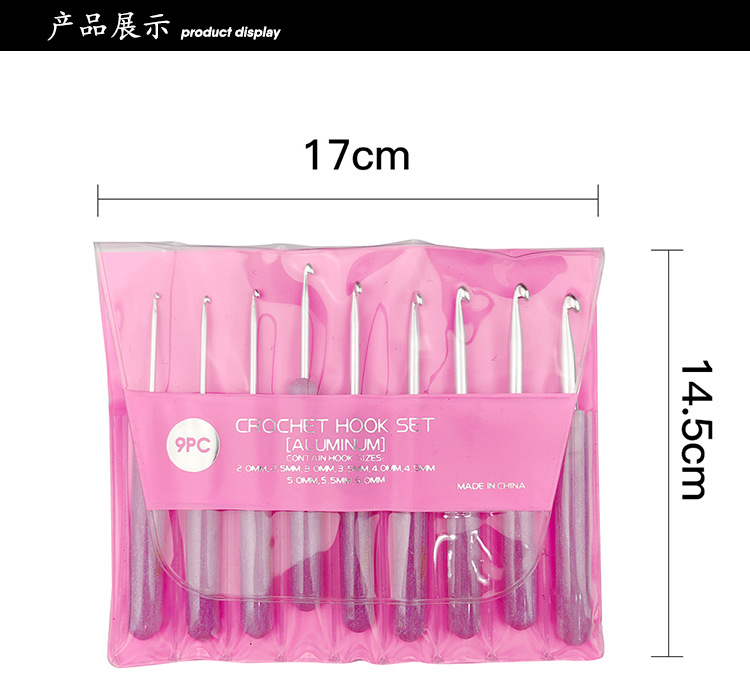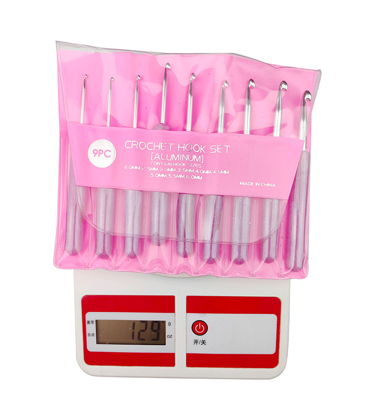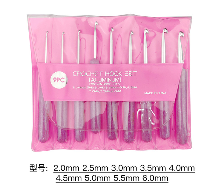 Herramientas de tejer mango de resina de aluminio crochet polvo transparente conjunto de 9 2.0-6.0 mmvc embalaje