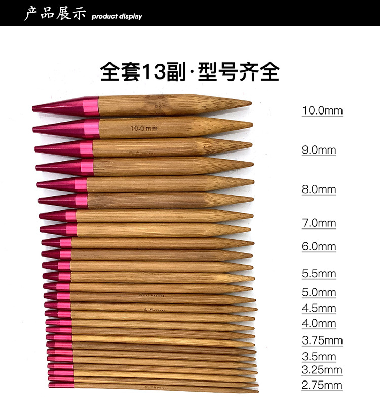 Nuevas herramientas de tejido transfronterizas desmontables aguja de bambú 5 + 8 aguja de manga un conjunto de 10 paquetes de PU