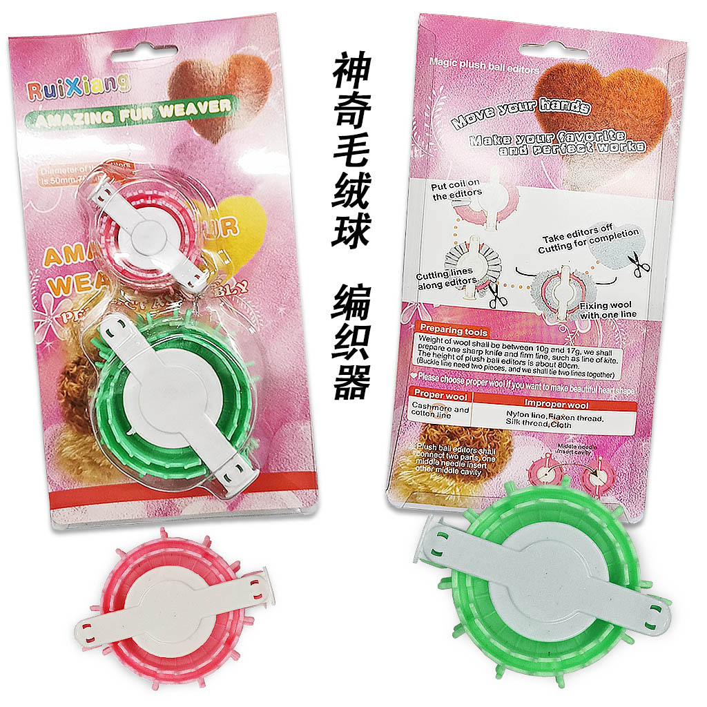 Suéter aguja máquina de tejer en forma de corazón pompón bola que hace la máquina conjunto de 2 especificaciones blister Inglés instrucción blister Tarjeta de embalaje
