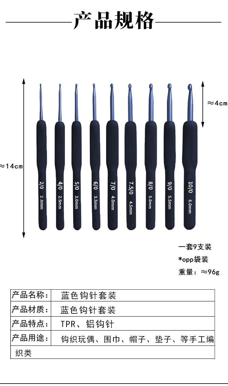 | Colores | Bolso OPP de 9 piezas de ganchillo azul oscuro,Bolsa OPP de ganchillo rojo de 9 piezas |