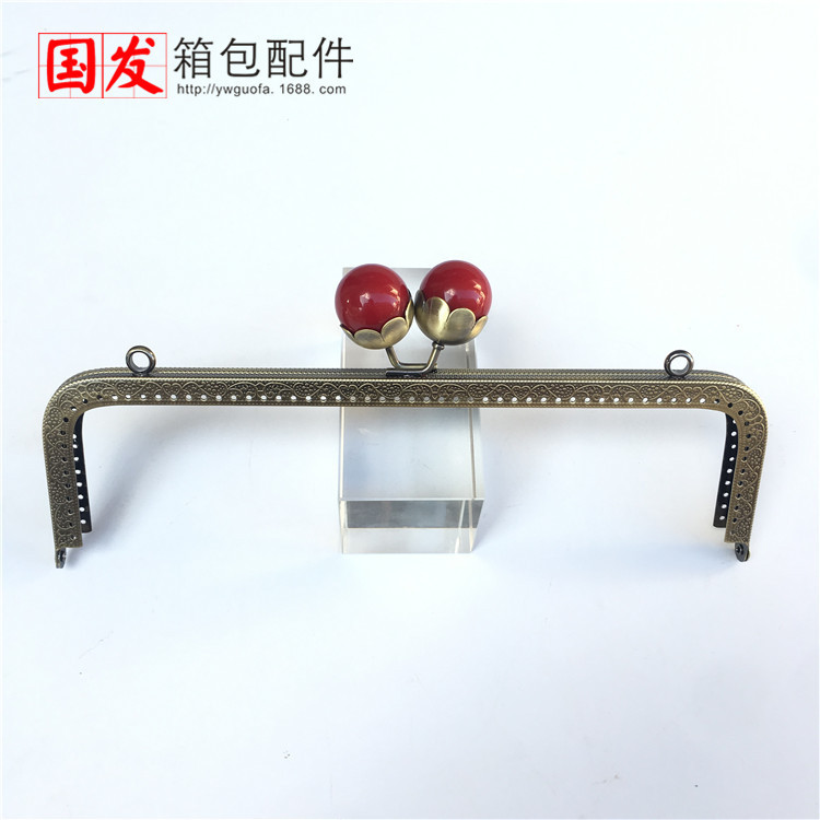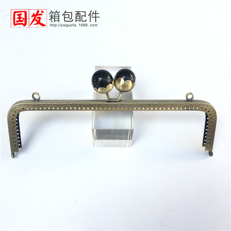 25cm方形压花莲花 珍珠头口金 古铜 大珍珠头 0560-GT