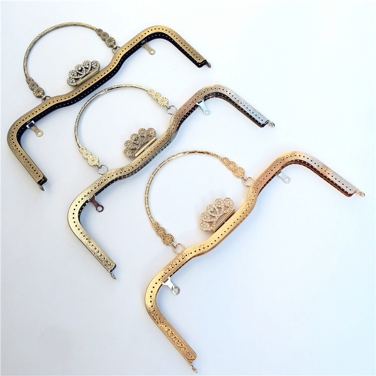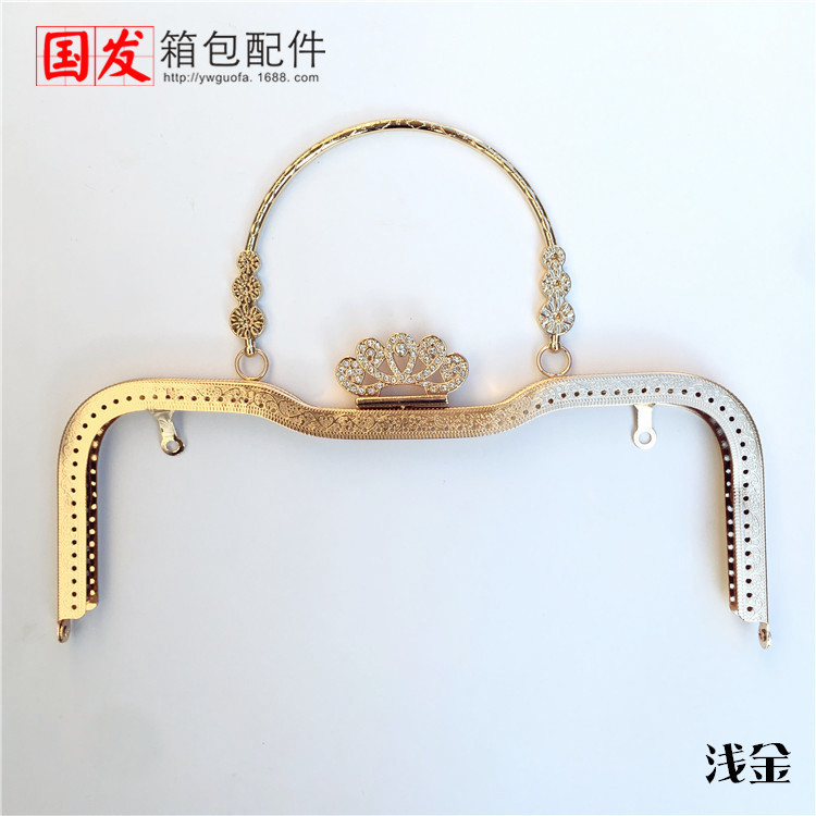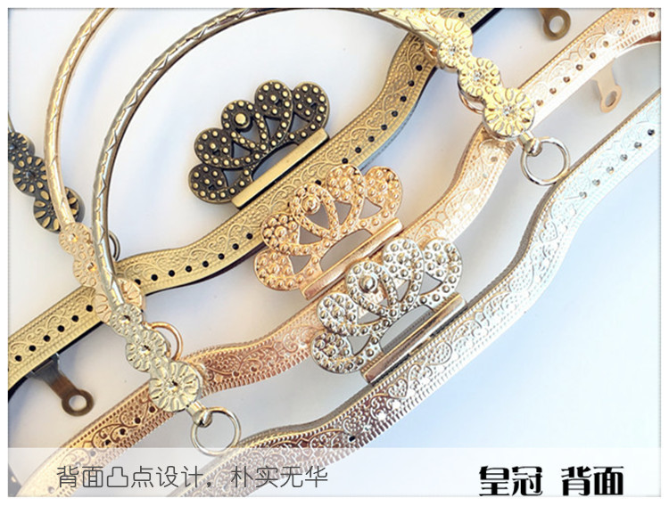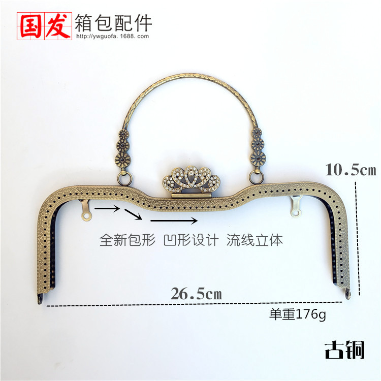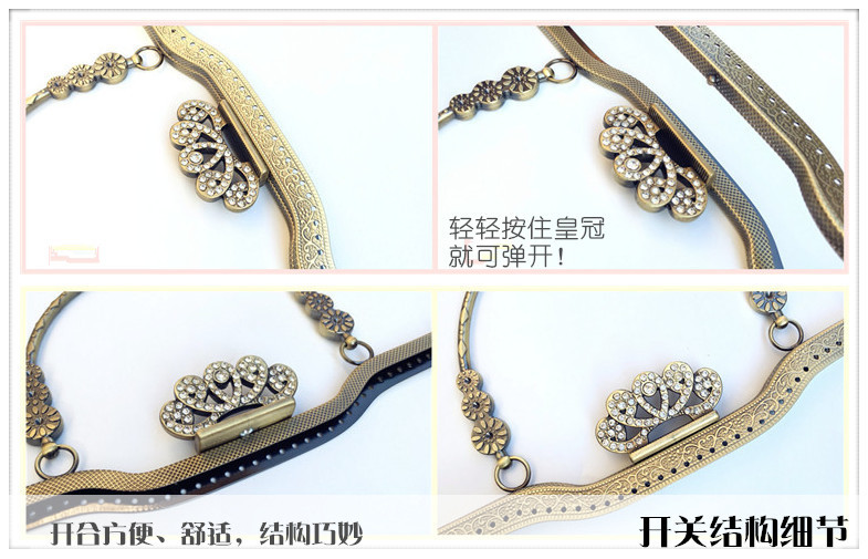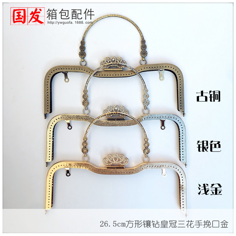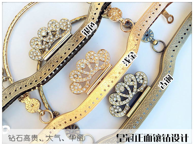 特价5折促销: 26.5cm 方形压花镶钻皇冠三花手挽口金 古铜银色浅金